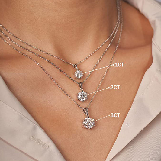 1CT-3CT Moissanite Solitaire Pendant Necklaces for Women