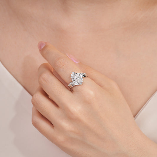 Moissanite Marquise Art Decor Halo Cluster Bypass Engagement Ring