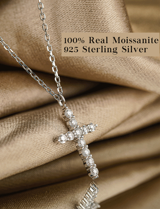 Moissanite Cross Pendent Necklace for Women in Sterling Silver 2.2MM/3MM