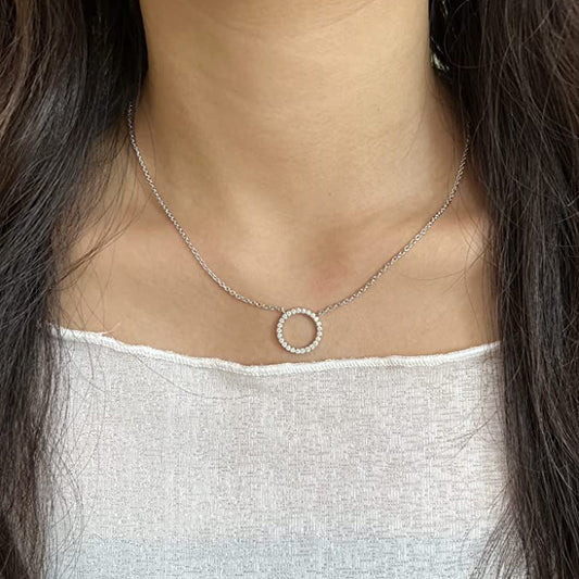 Moissanite Circle Pendant Necklace for Women in Sterling Silver 1.5cm/2.5cm