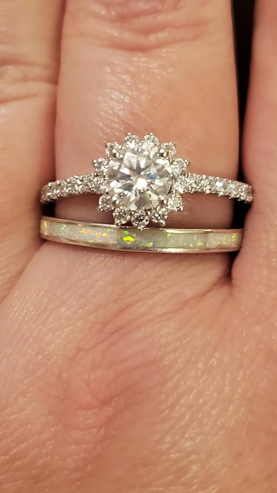 I wear it together with my opal eternity wedding band. It is the perfect set for me!