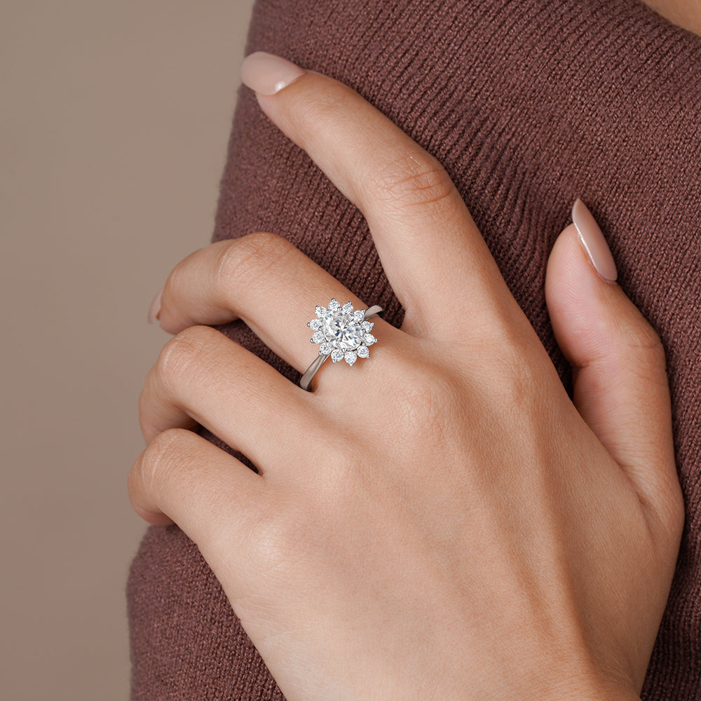 Round Cut Floral Halo Lab-Grown Diamond Engagement Ring in 14K/18K Gold