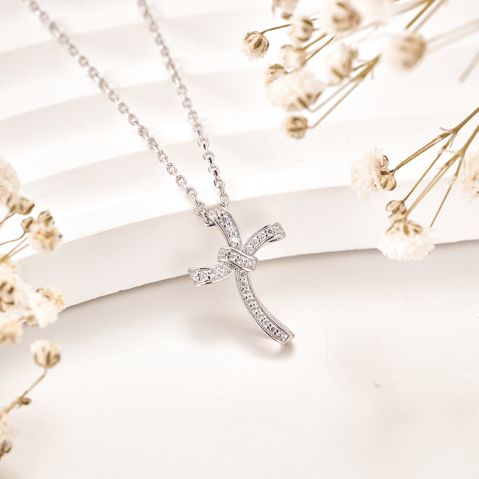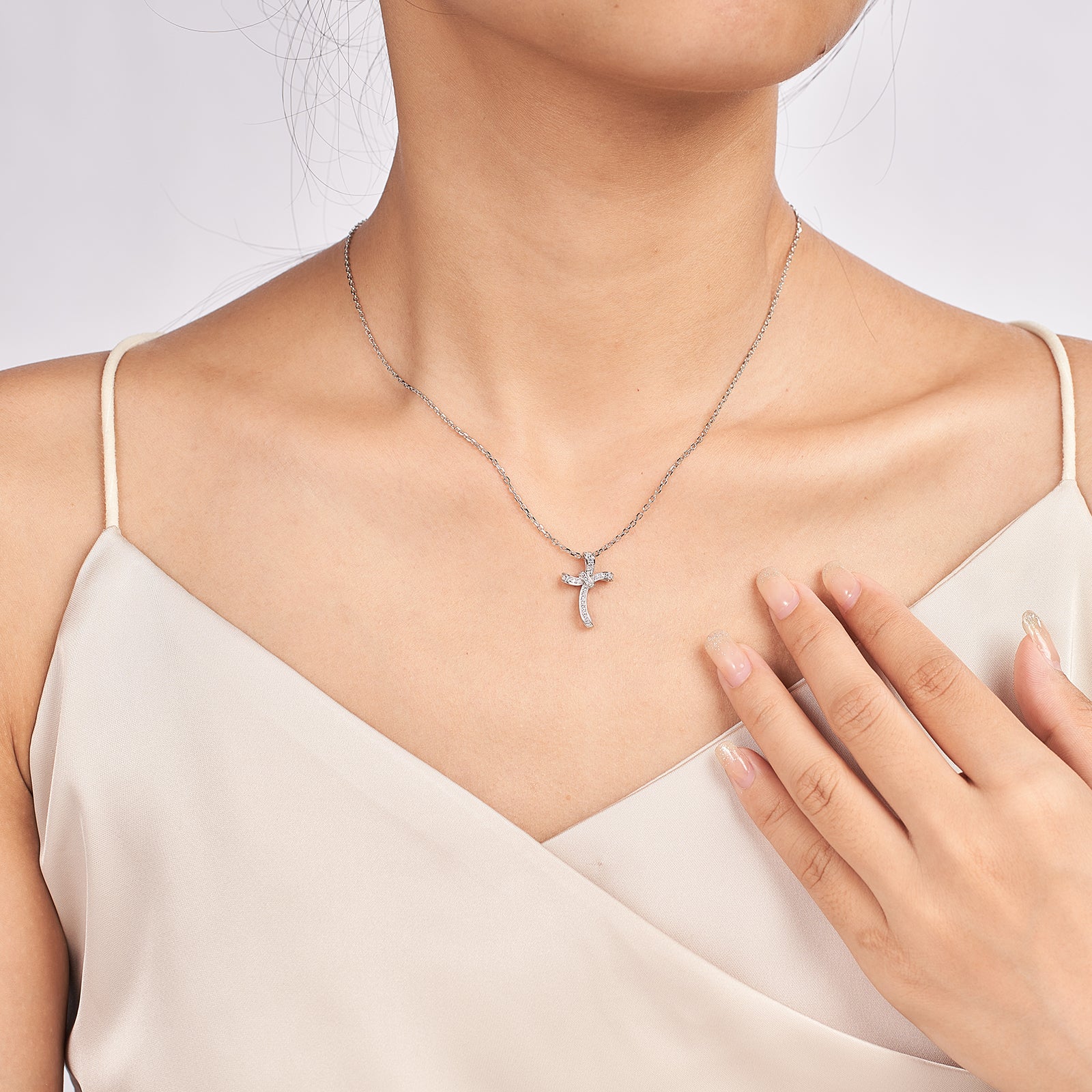 Moissanite Cross Pedant Necklaces In Sterling Silver