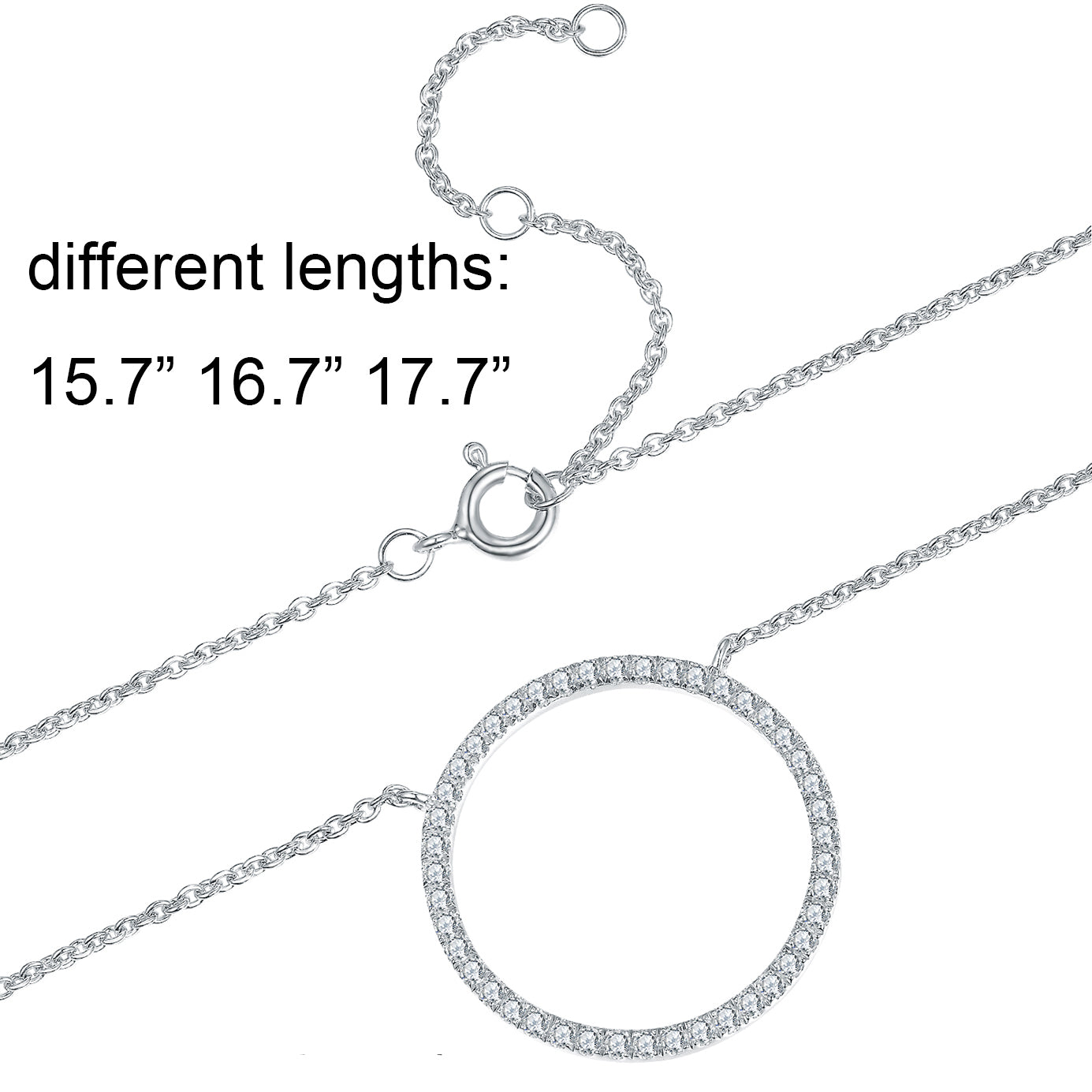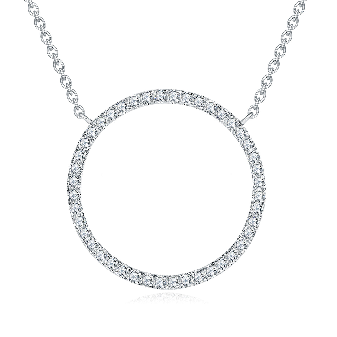 Moissanite Circle Pendant Necklace for Women in Sterling Silver 1.5cm/2.5cm