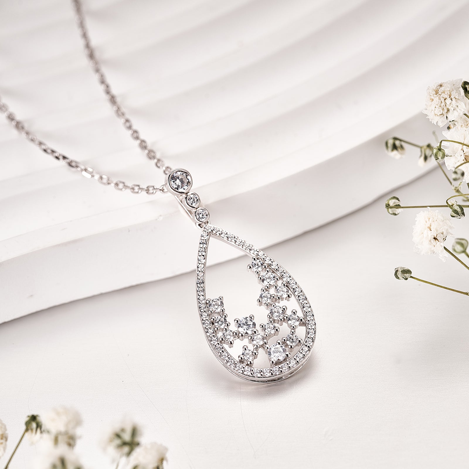 Moissanite Teardrop Cluster Pendent Necklace for Women