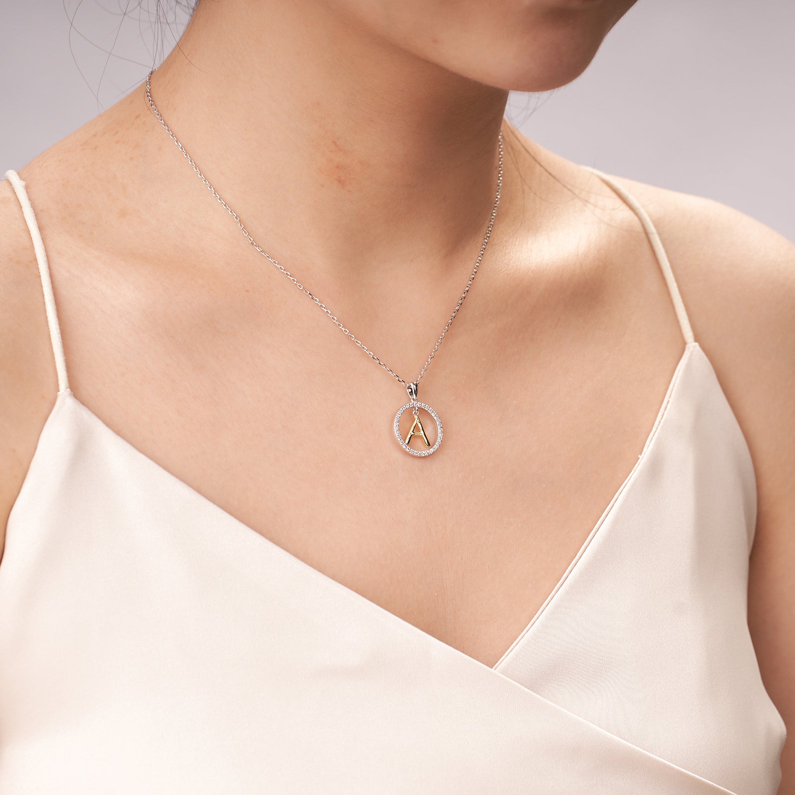 Moissanite Circle Letter A Pendant Necklace for Women