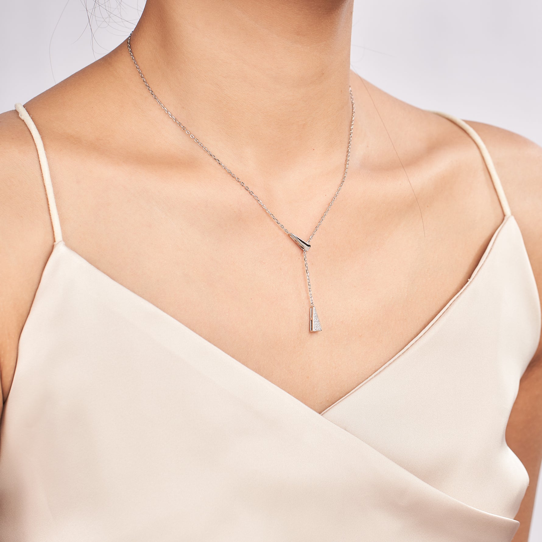 Moissanite Triangle Pendant Necklace for Women in Silver