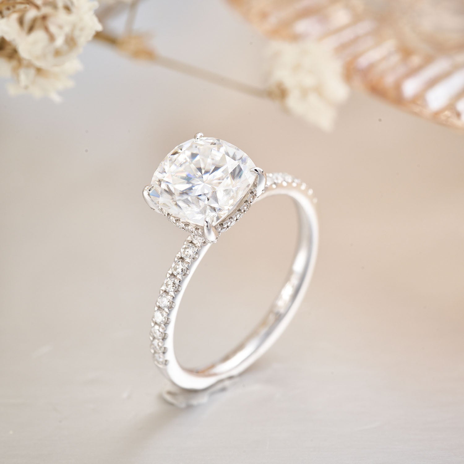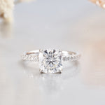 Cushion Cut Hidden Halo Moissanite Rings for Women 2.5CT