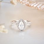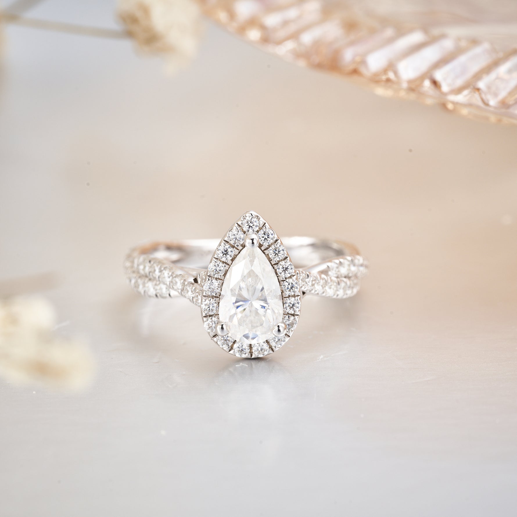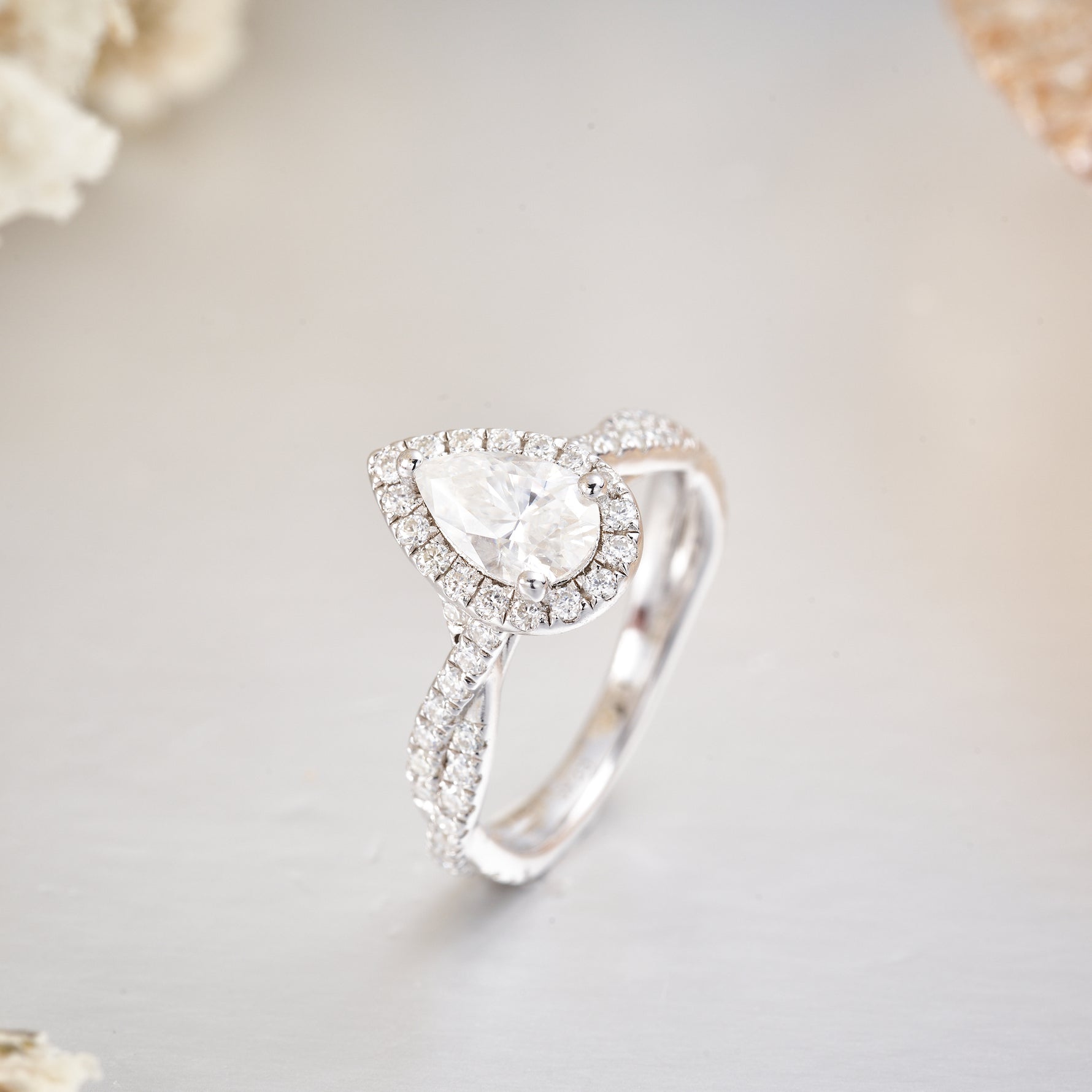 1CT Pear Shaped Moissanite Halo Engagement Ring with Infinity Band