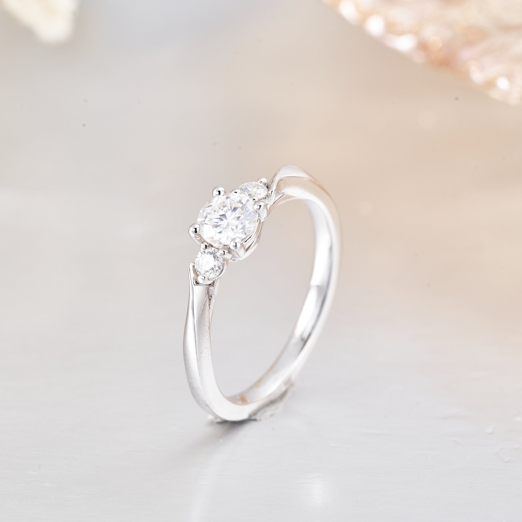 3 Stone Moissanite Engagement Ring for Women in Sterling Silver