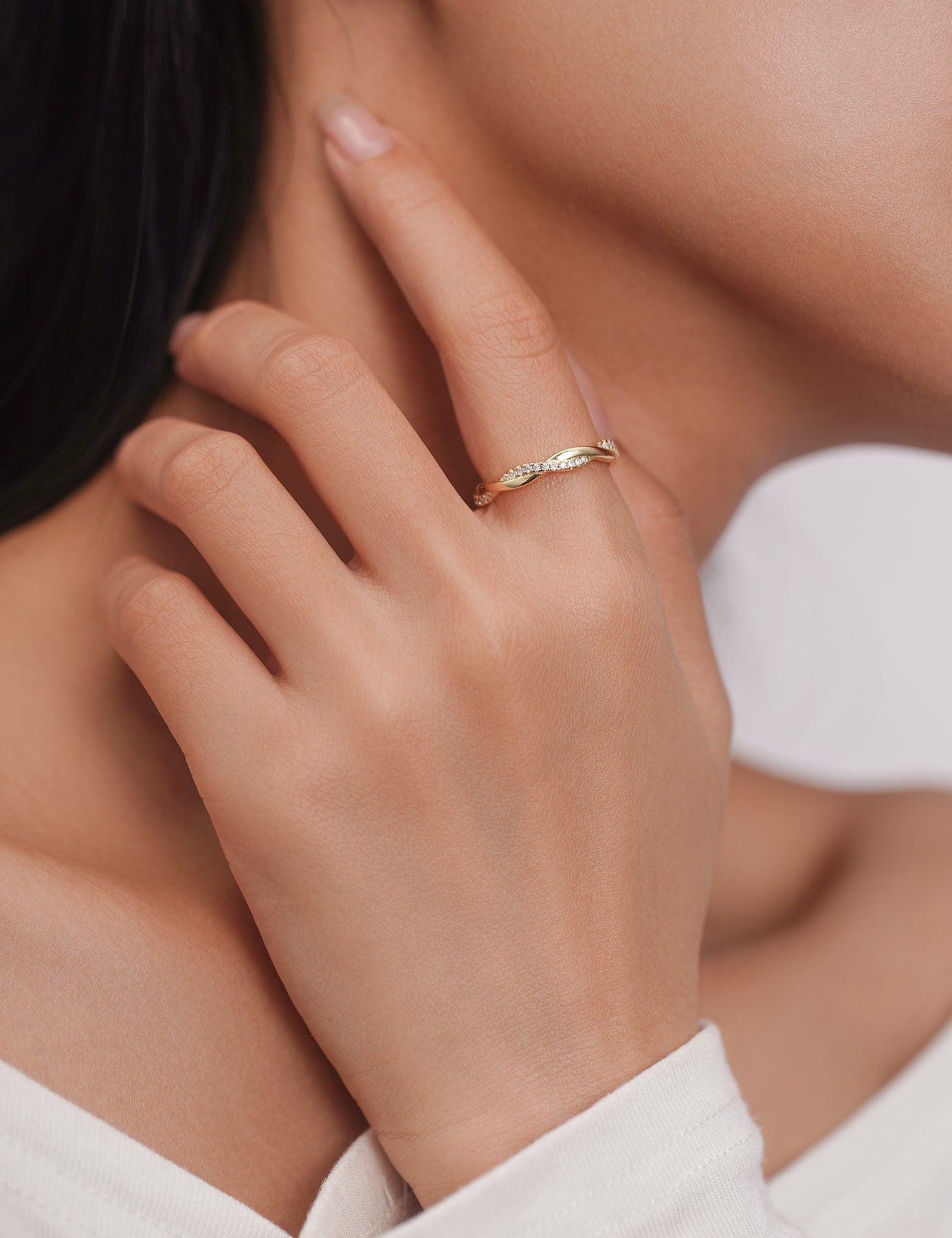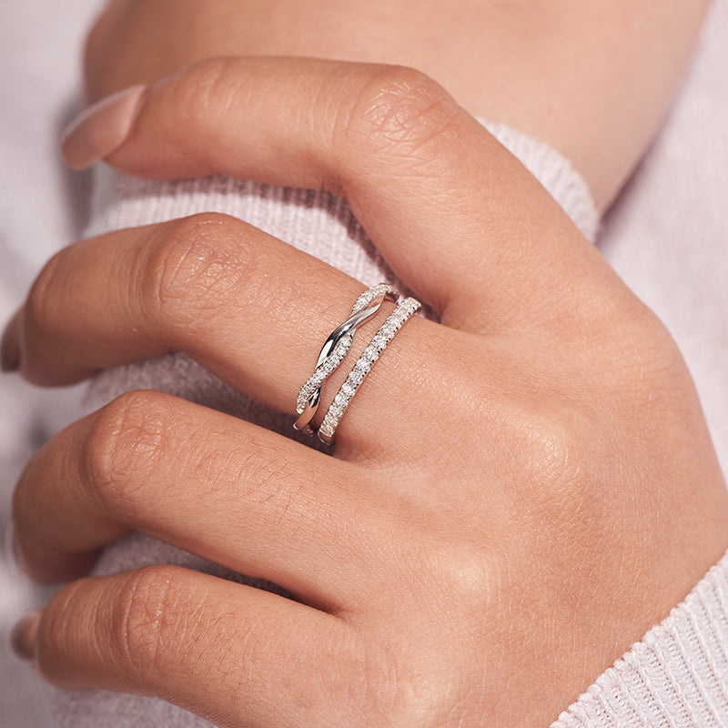 Full Moissanite Twist Wedding Band for Women 0.3CT 1.5mm
