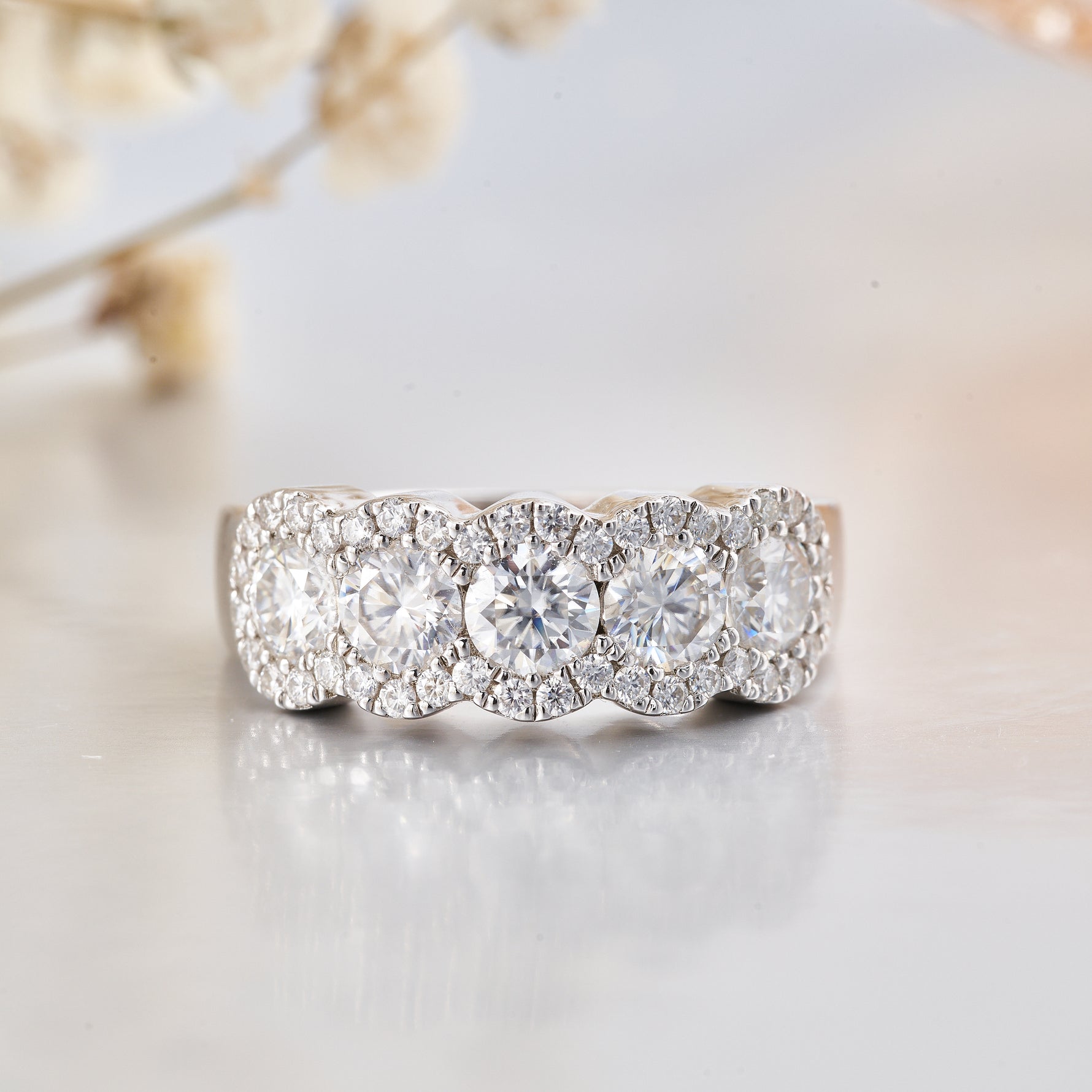 Moissanite FIve Stone Engagement Wedding Ring for Women 1.65CT