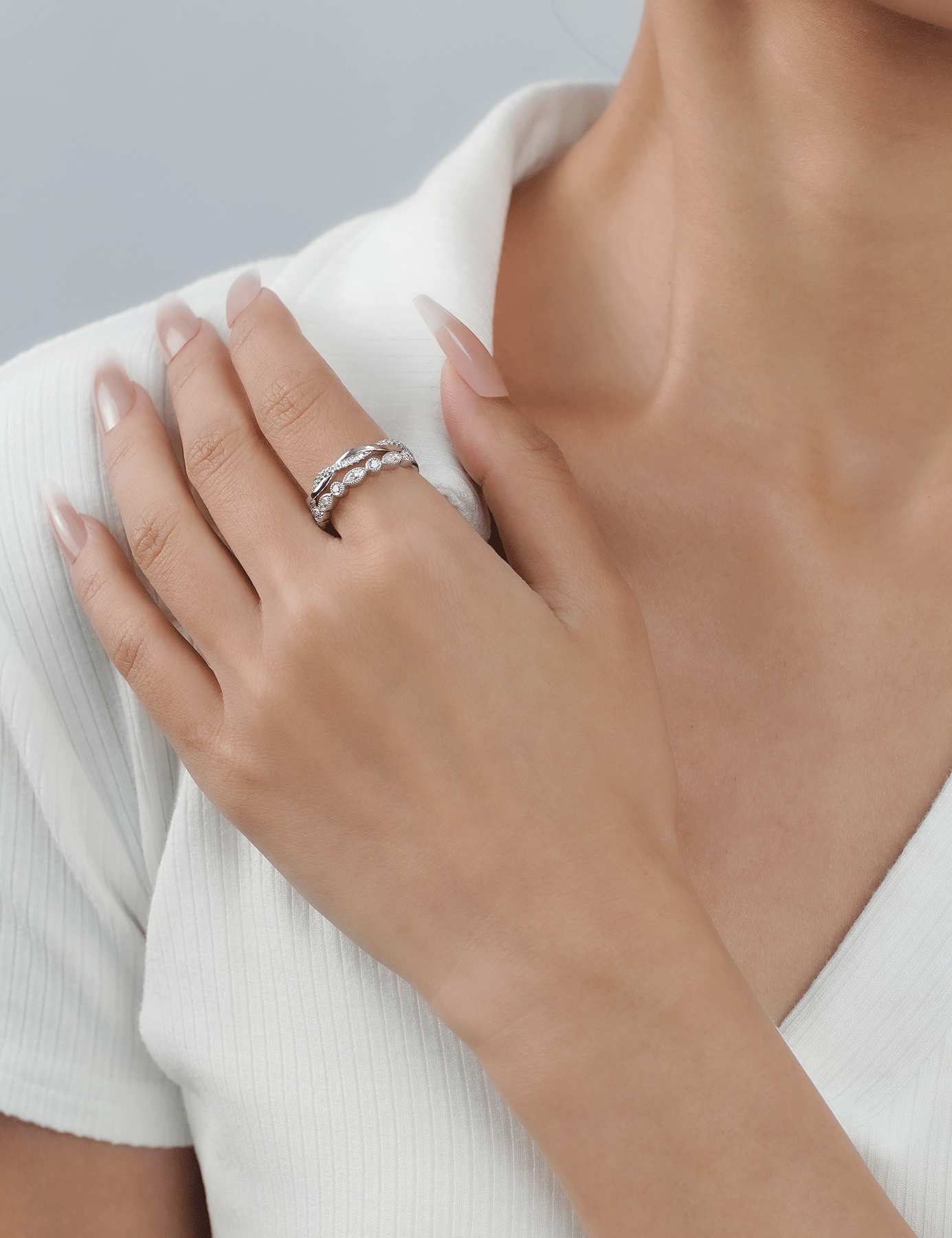 【Safe Material】- These sterling silver stackable rings are made of 925 sterling silver and 18K white gold plated. It is 100% hypoallergenic, lead-free and nickel-free. Moissanite eternity band rings for women won't make your skin turn green, red and inchy.