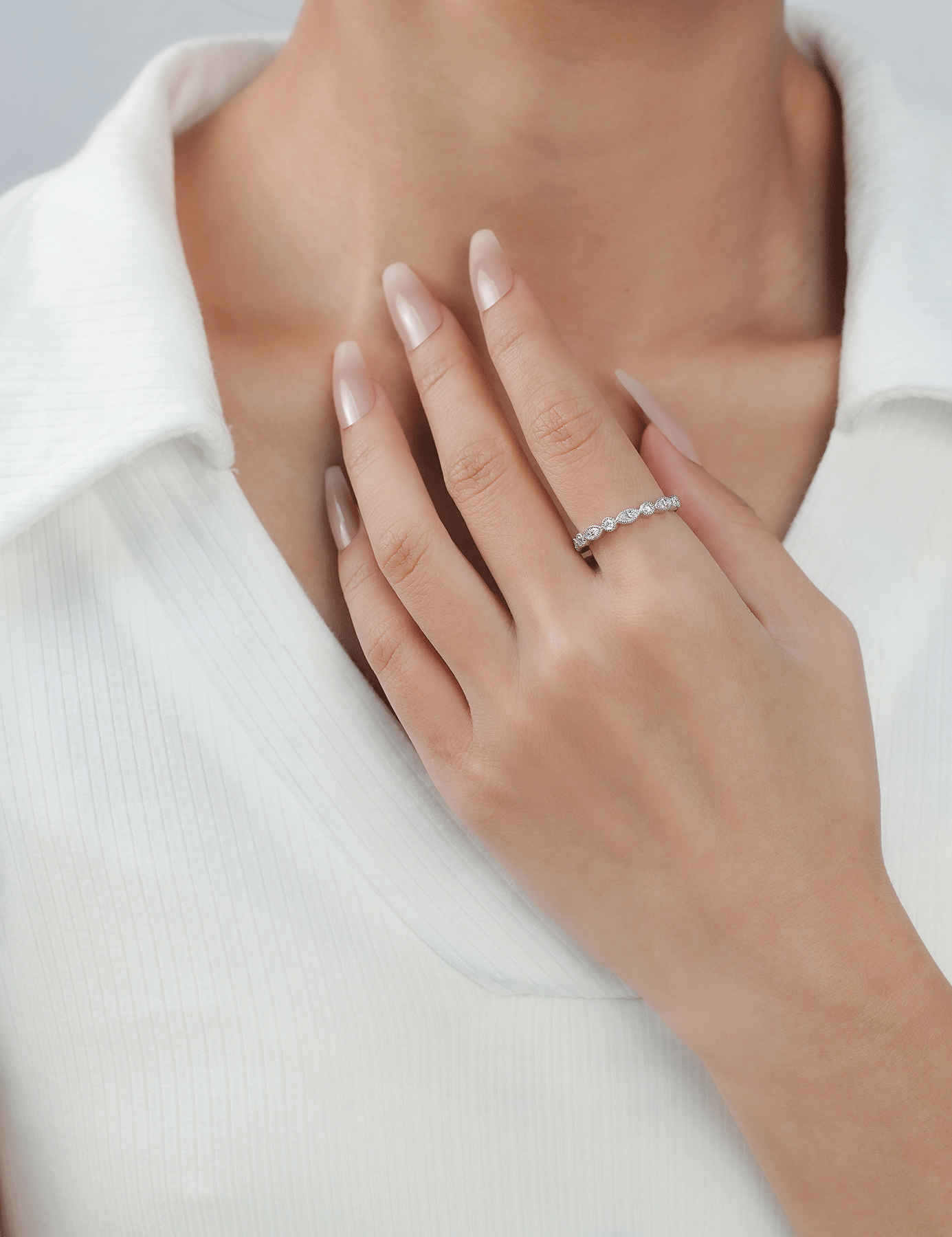 【Hand Polishing】-We polished every moissanite wedding bands for women by hand to make it feel smooth. It won't scratch your skin or get caught in your hair or clothing.