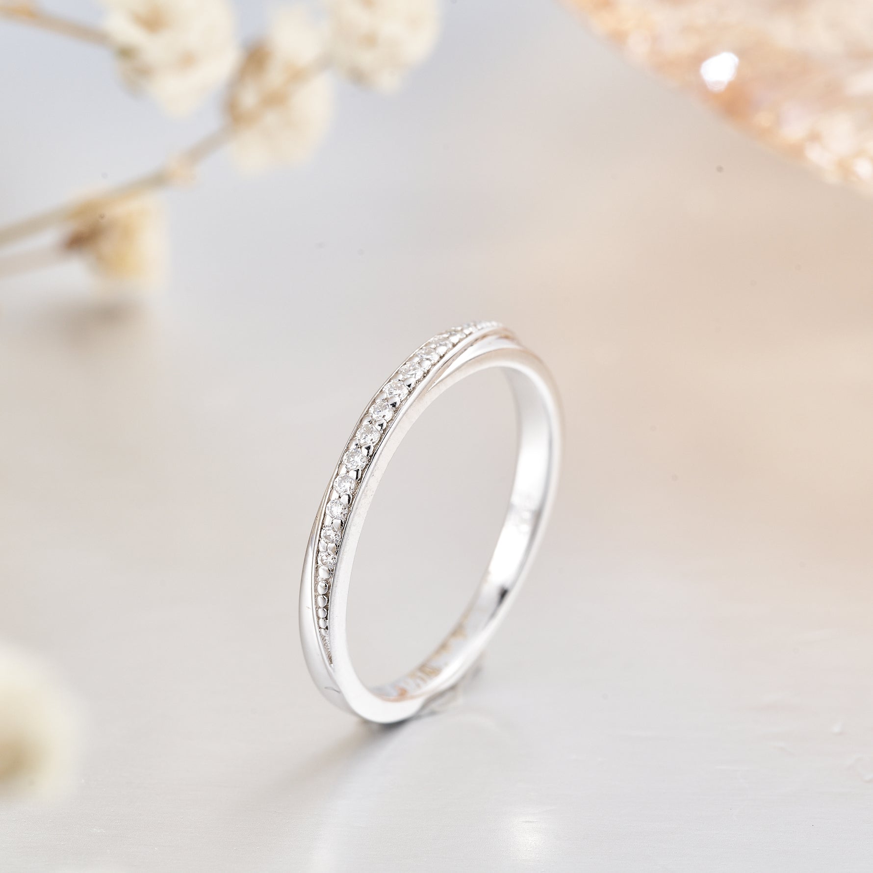Moissanite Half Sterling Silver Eternity Ring for Women 1.2mm