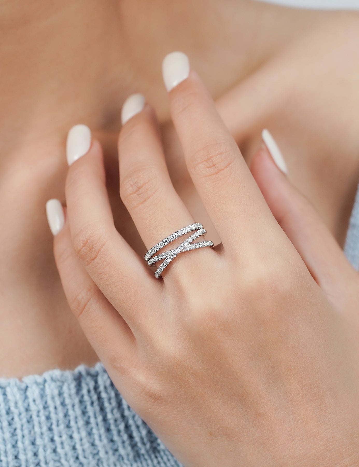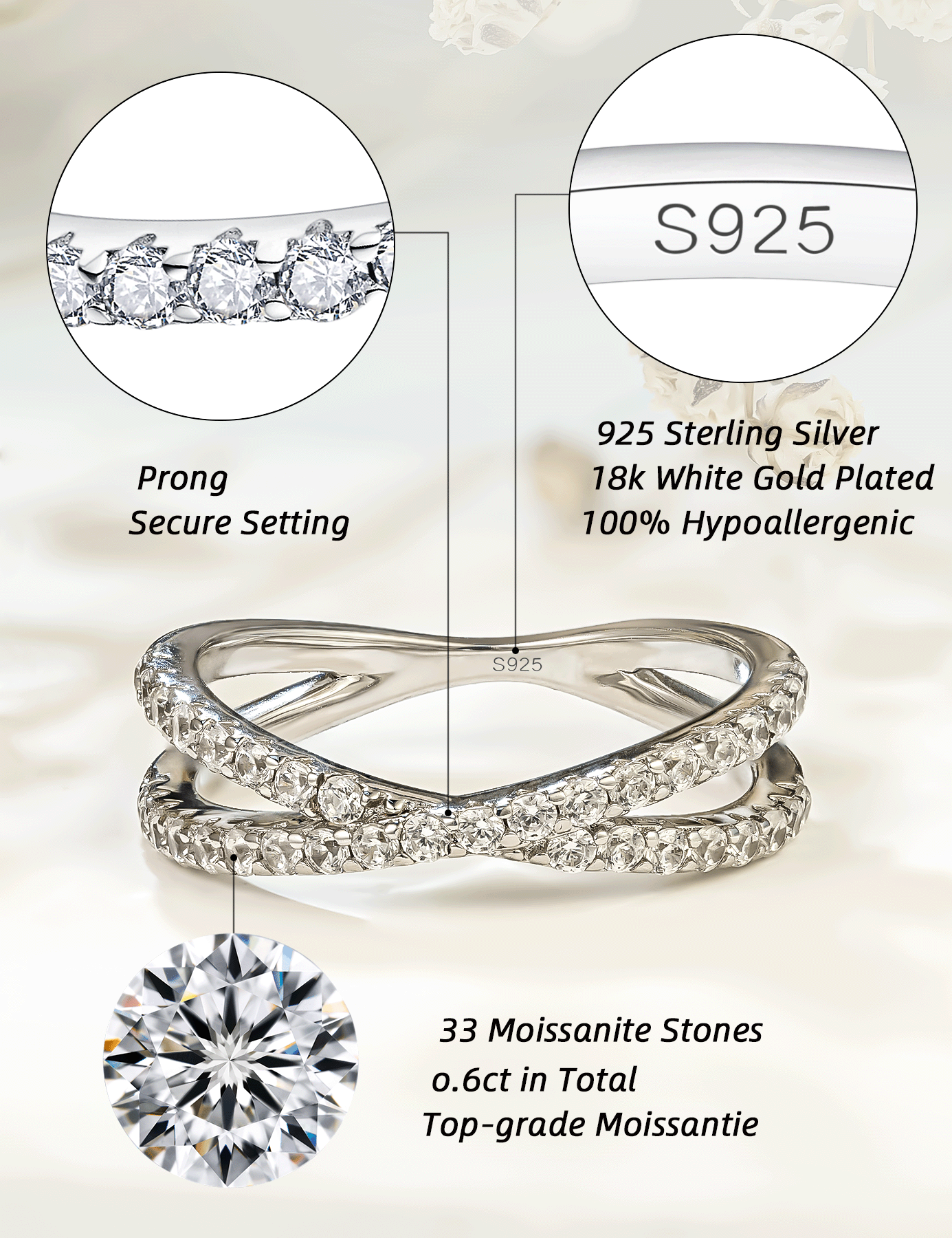 Moissanite Criss Cross Eternity Wedding Band for Women