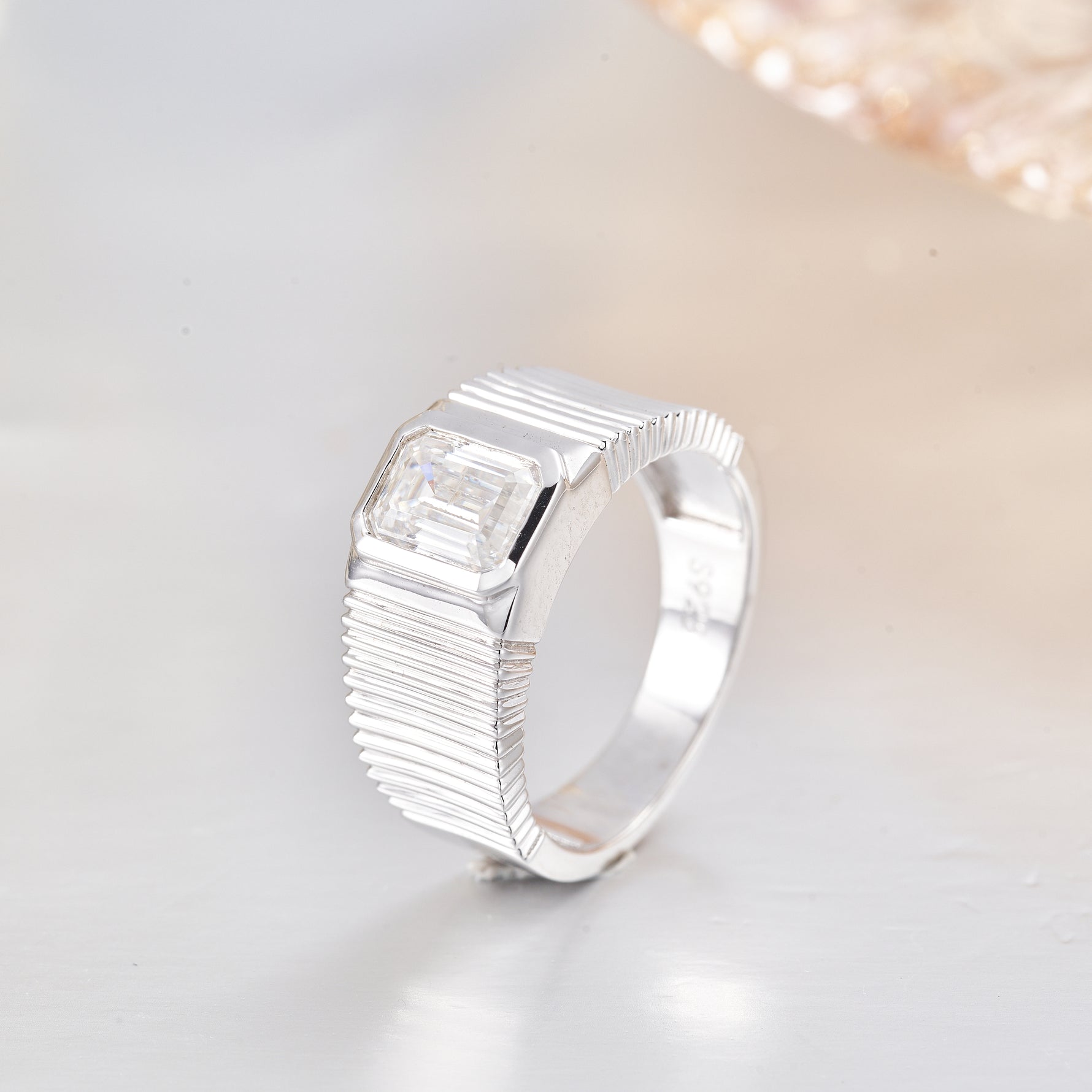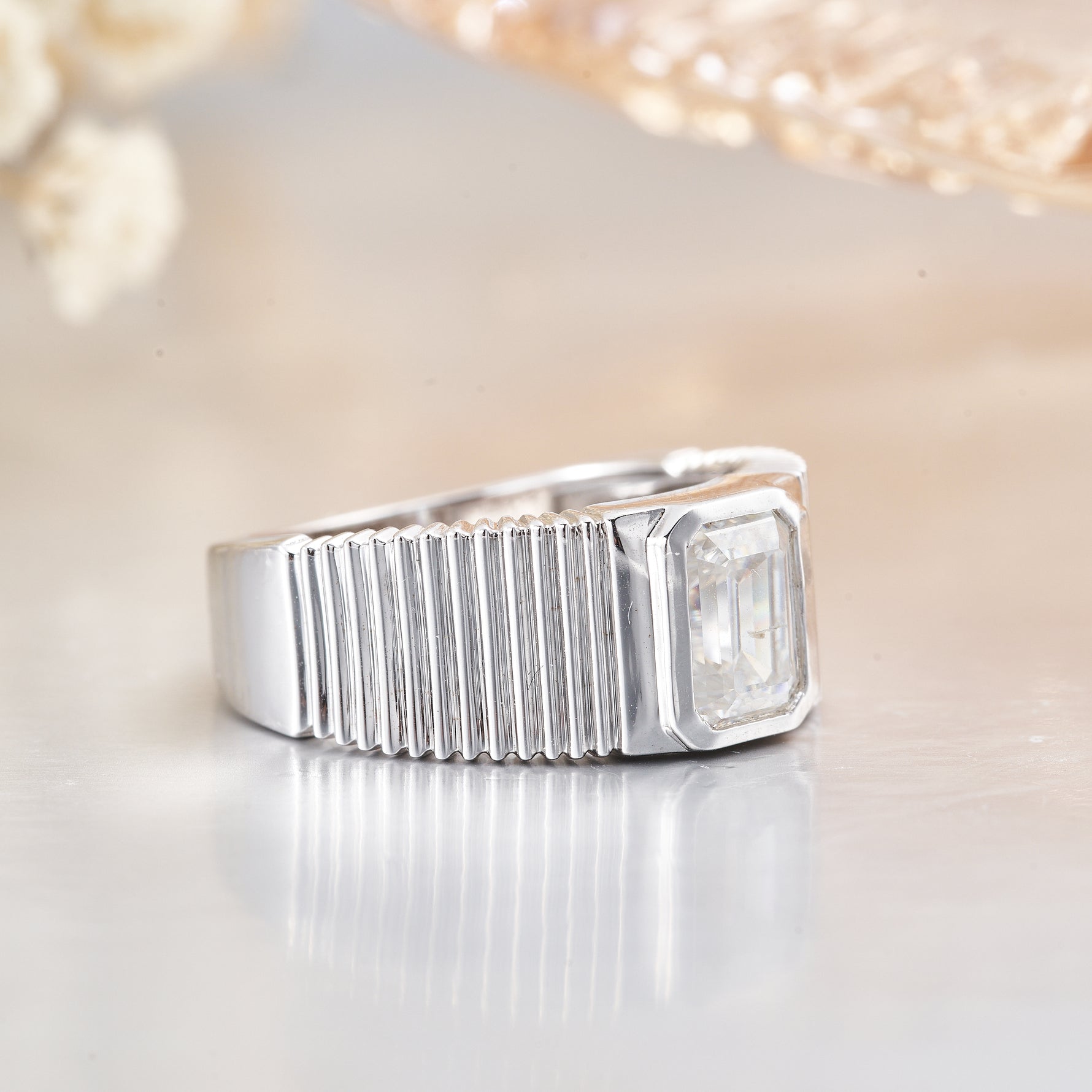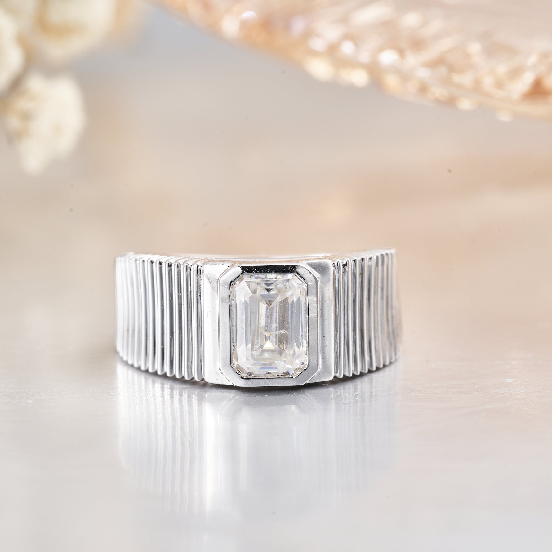 1CT Moissanite Emerald Cut Engagement Ring for Women