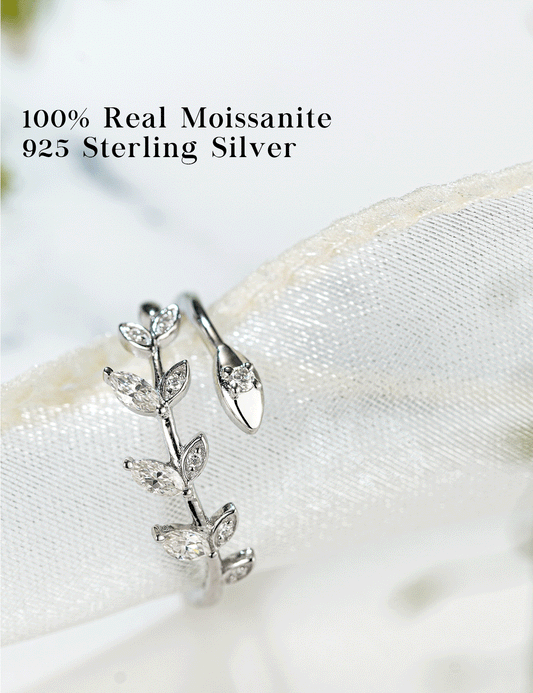 Moissanite Adjustable Leaf Eternity Wedding Band for Women