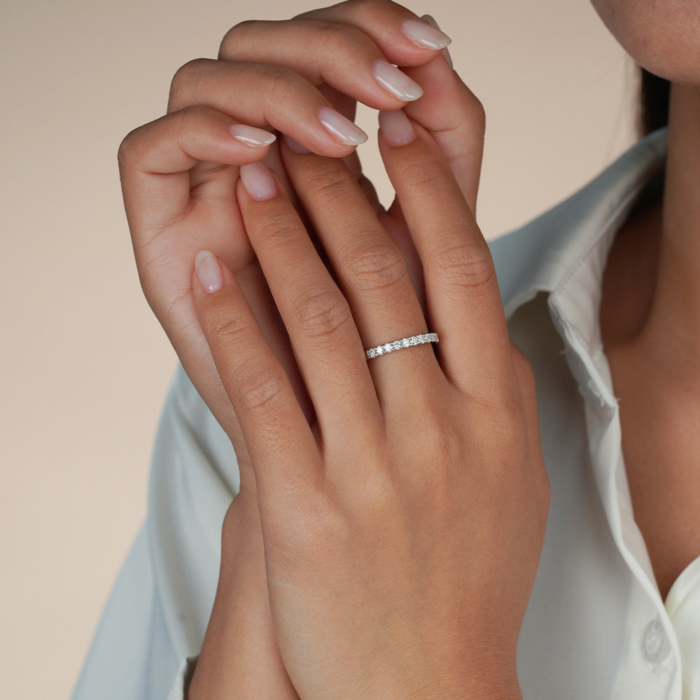 A timeless full-eternity band, thoughtfully crafted for lasting brilliance This exquisite half-eternity band features genuine lab-grown diamonds that are optically and chemically identical to natural diamonds, offering the same exceptional hardness and everlasting brilliance. Set in durable 14K solid gold, these diamonds deliver greater fire and sparkle than other gemstones, will never tarnish or fade, and provide outstanding value—allowing you to wear more luxurious sparkle every day. A perfect symbol of timeless love, designed to endure.