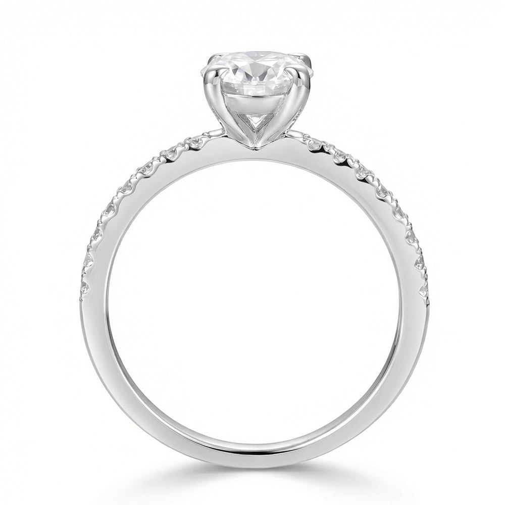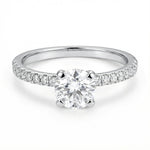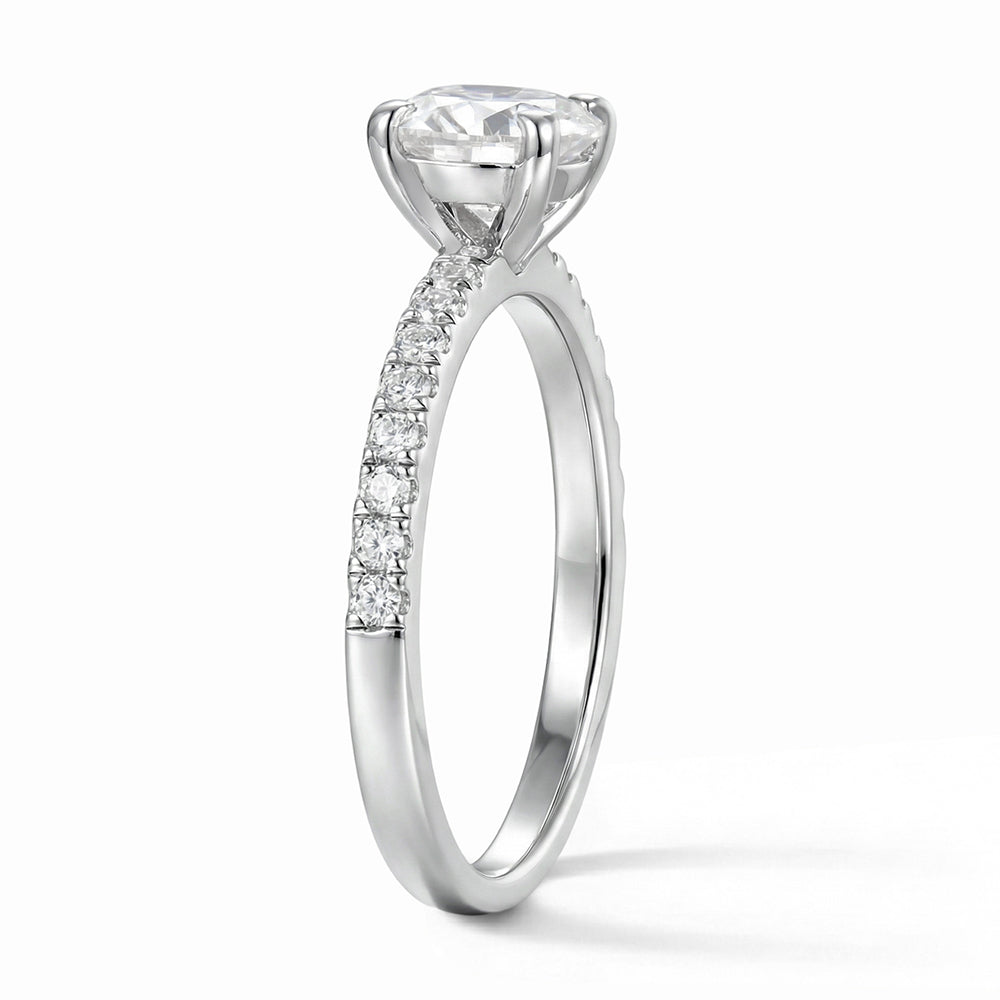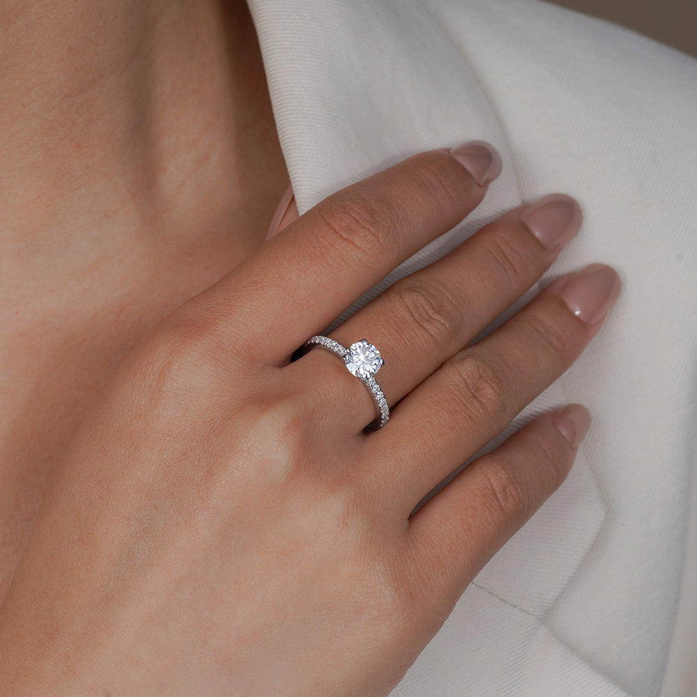 Lab Grown Diamond Solitaire Engagement Ring with Pavé Diamond Band for Women