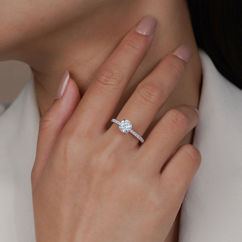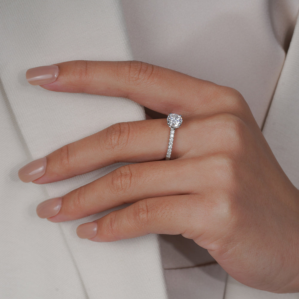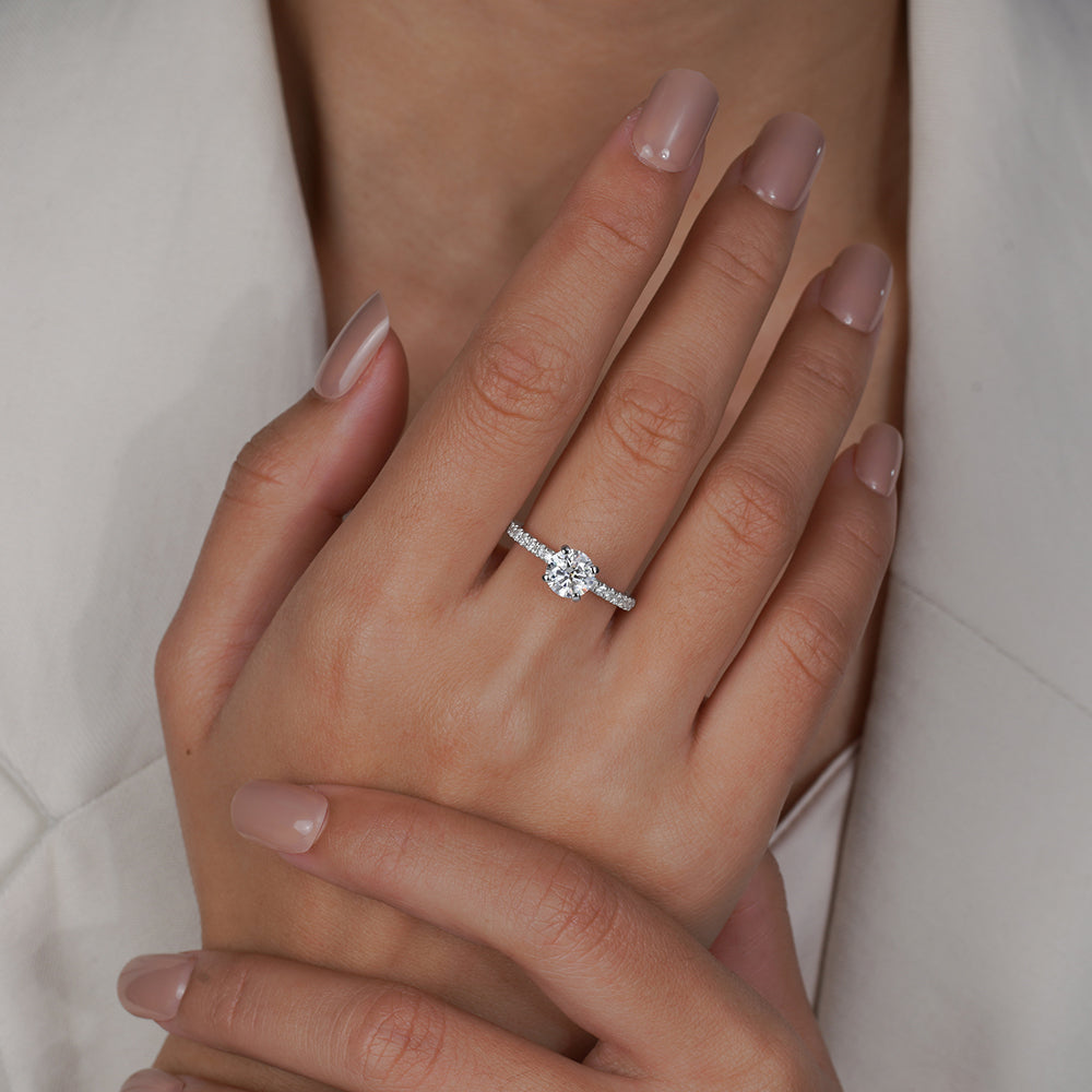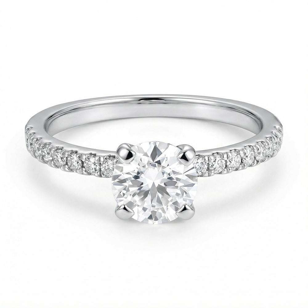Lab Grown Diamond Solitaire Engagement Ring with Pavé Diamond Band for Women