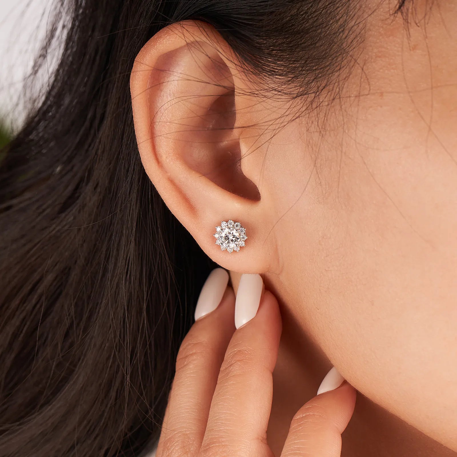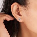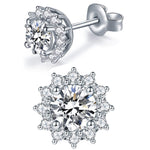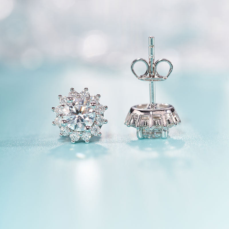 Moissanite Flower Halo Stud Earrings for Women 1CT