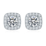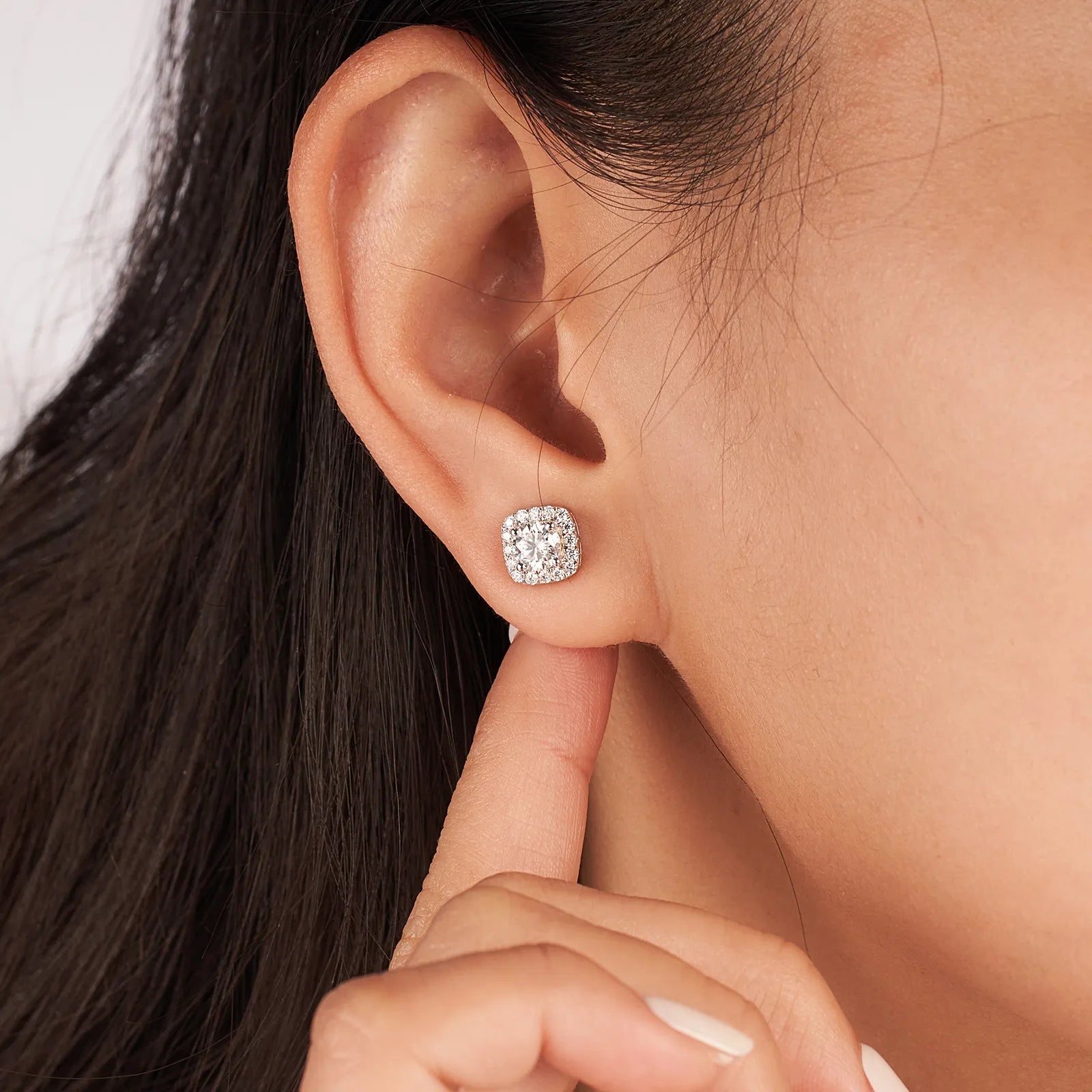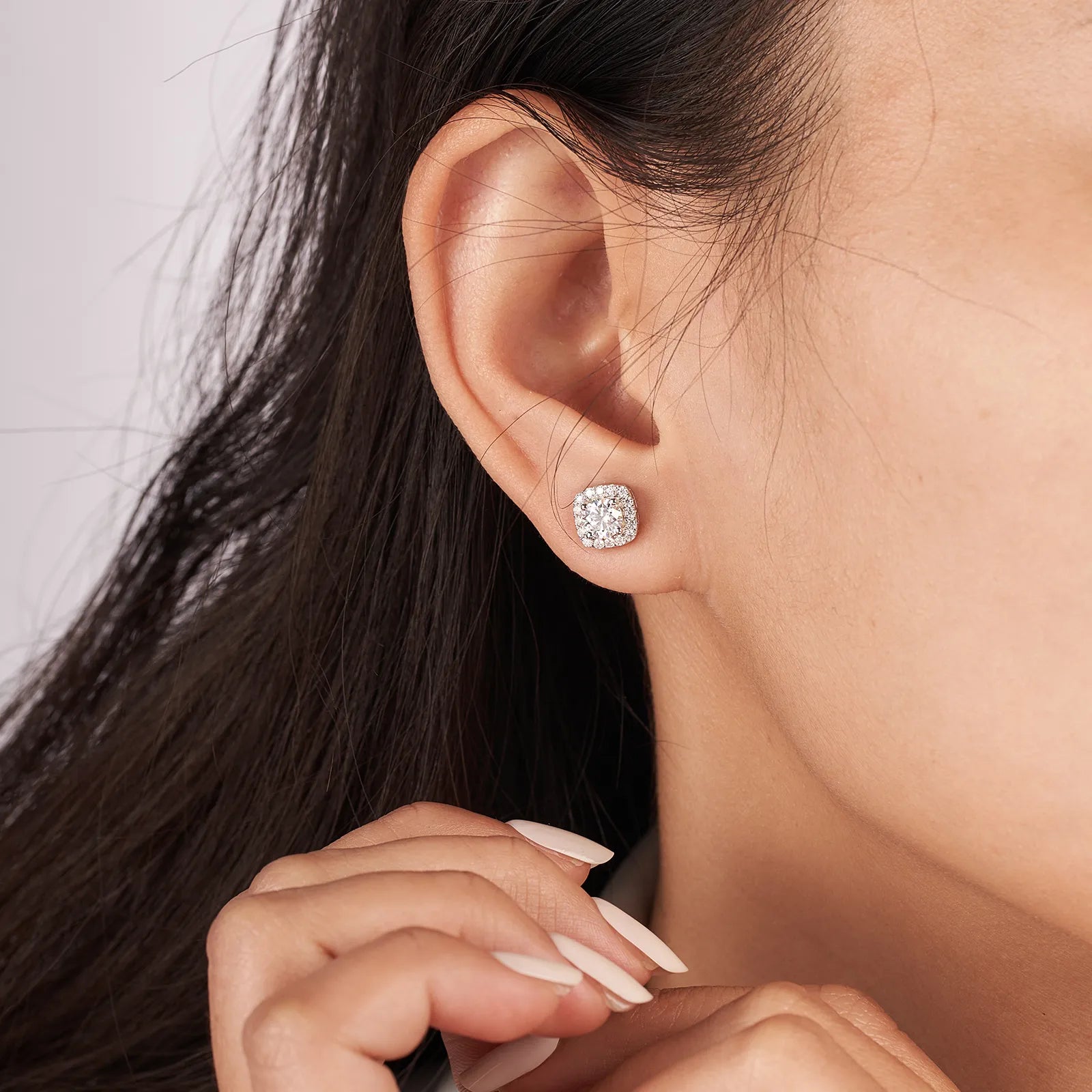 Moissanite Square Halo Stud Earrings for Women 1CT
