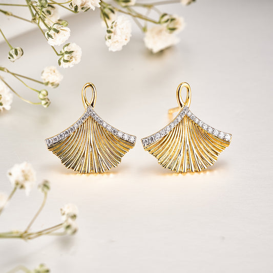 Moissanite 18K Yellow Gold Plated Nature Inspired Stud Earrings