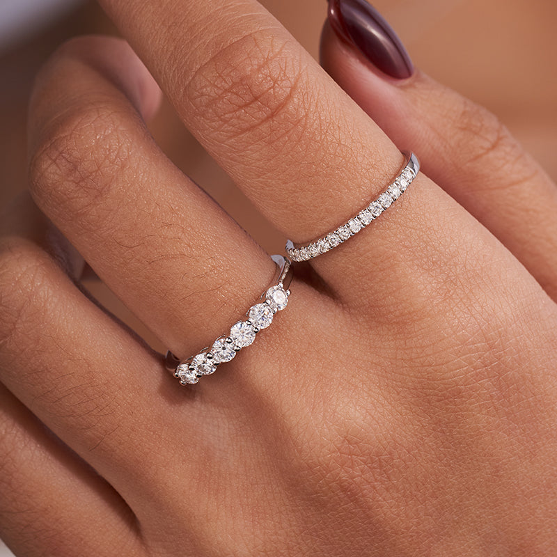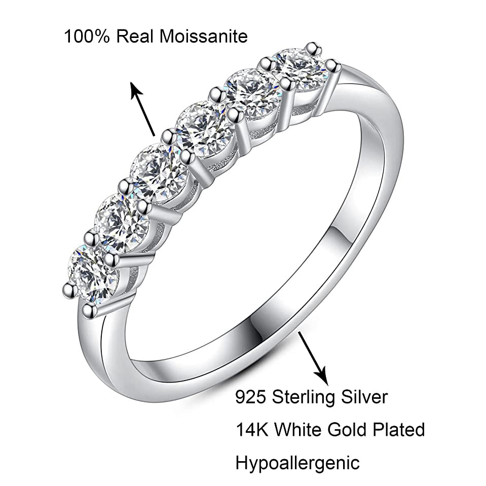 6 Stone Moissanite Stackable Wedding Band Rings for Women 0.7CT