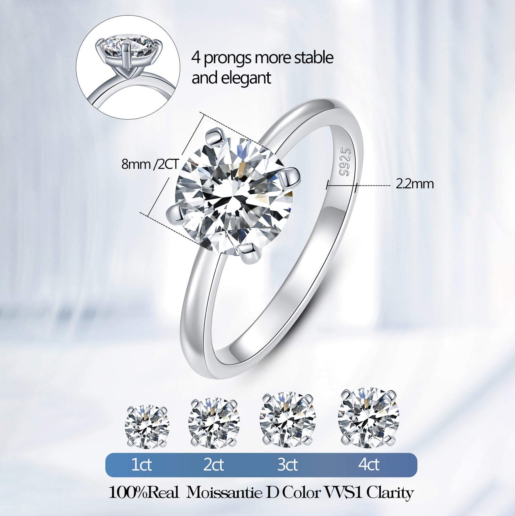 【100% Real Moissanite with More Sparkle】-The moissanite engagement ring is made of 100% REAL MOISSANITE, which is as hard and shinny as natural diamond. It is 1 carat D Color VVS1 Clarity. It won't tarnish or discolor, while it is more cost-effective than diamond.