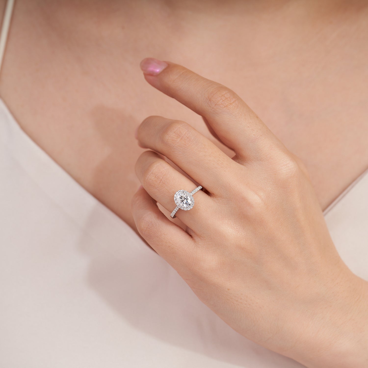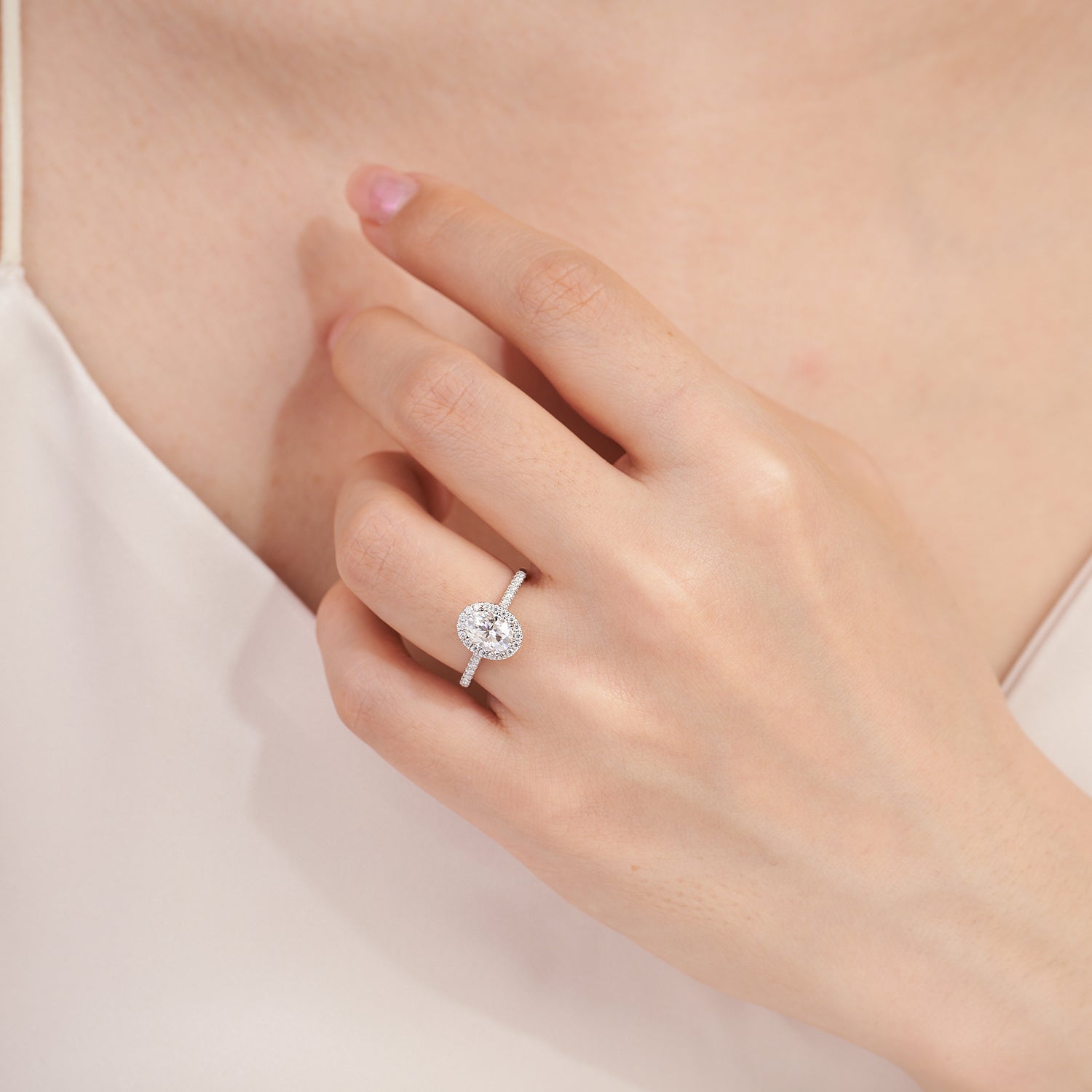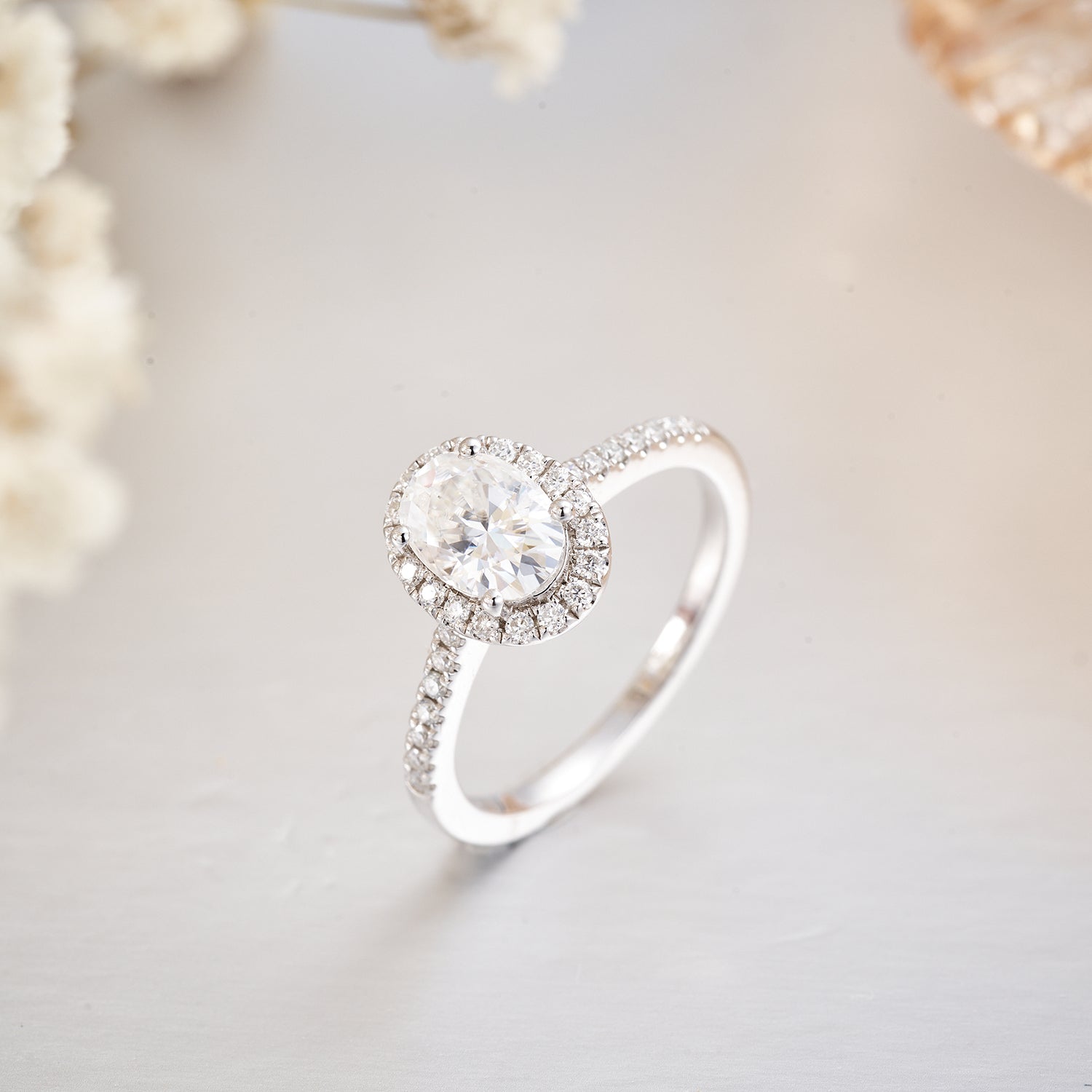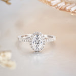 Oval Halo Moissanite Sterling Silver Engagement Ring for Women