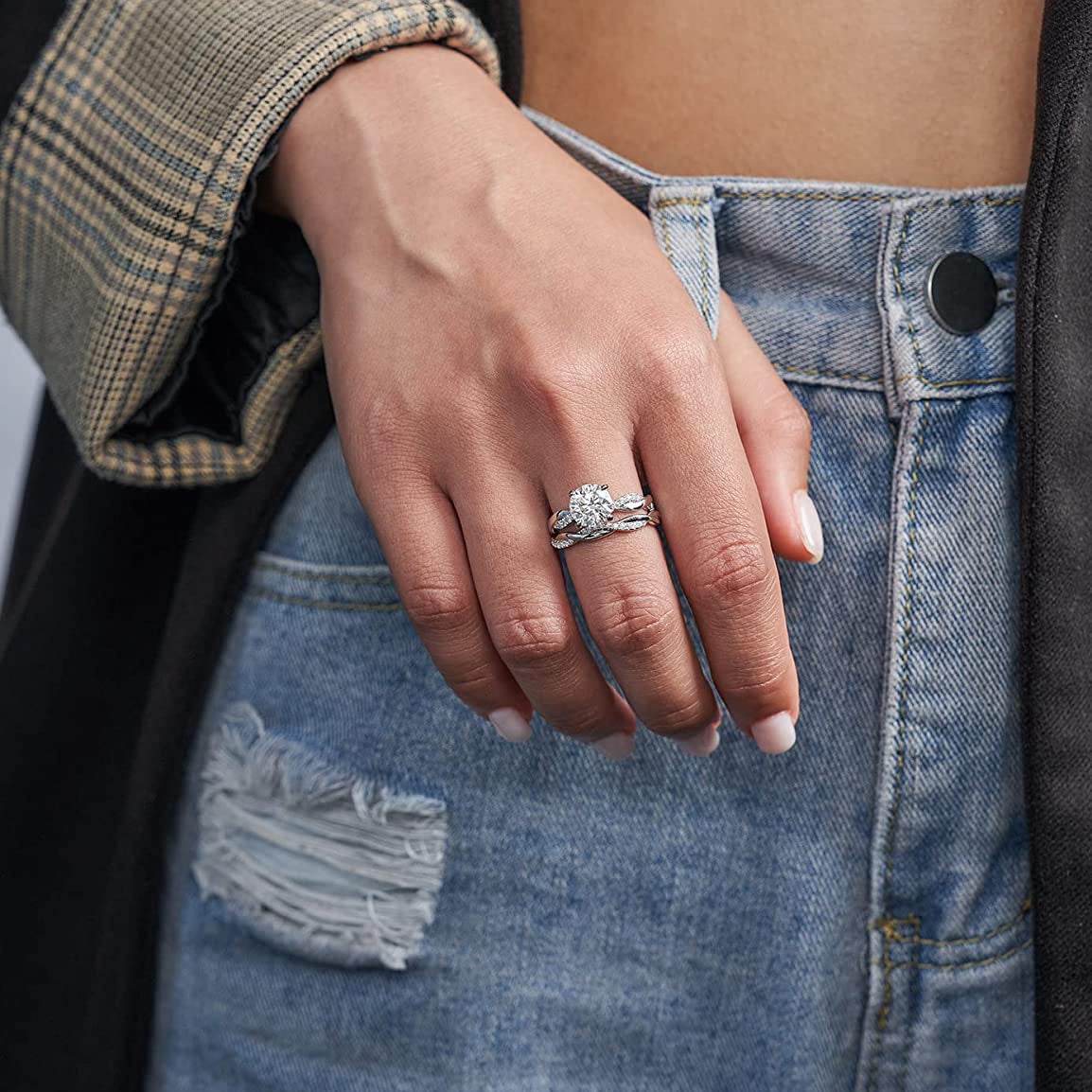 1CT/2CT Moissanite Twisted Solitaire Engagement Ring for Women