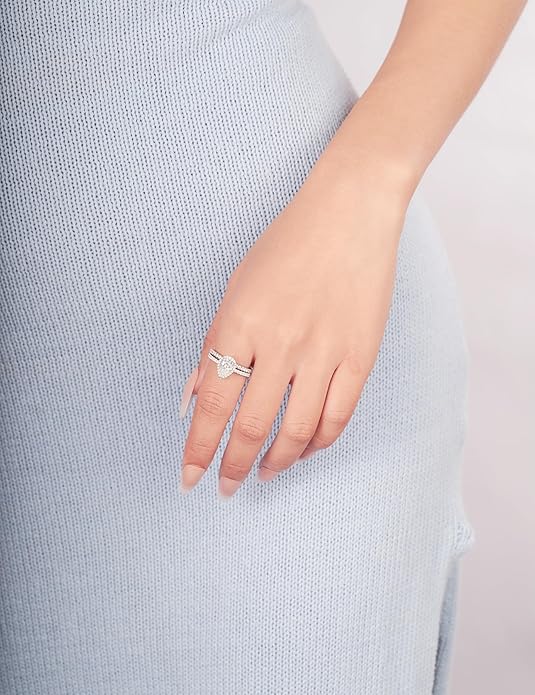 Moissanite Pear Shaped Halo Engagement Rings for Women