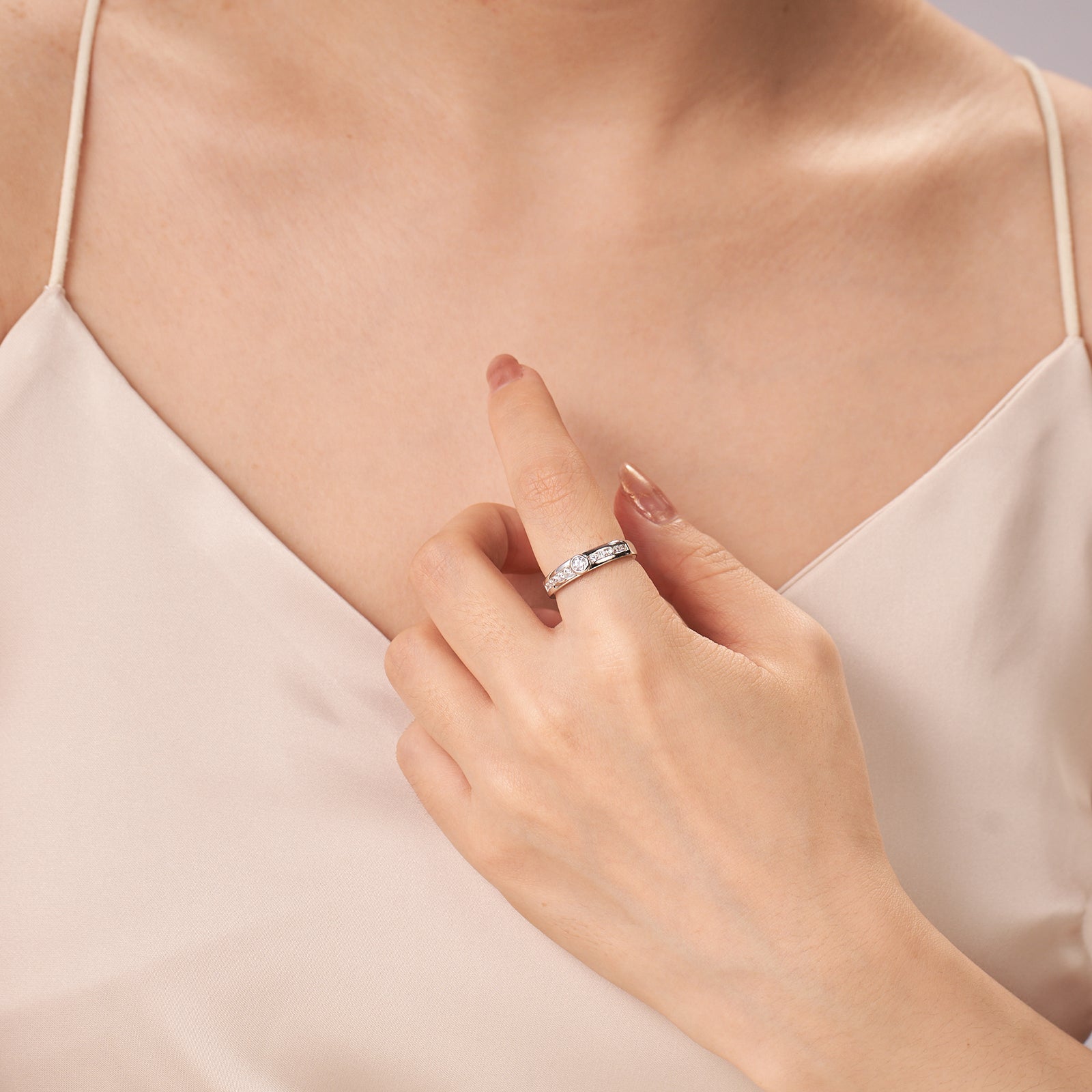 Moissanite Bezel Set Round Cut Small Promise Ring for Women