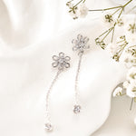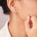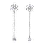 Moissanite Flower Dangle Long Earrings for Women in Silver