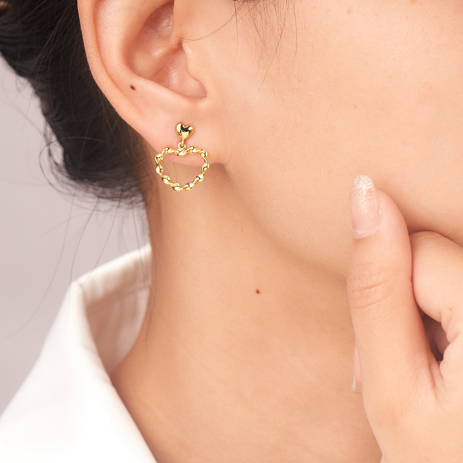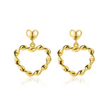 Twisted Heart Shaped Drop Earrings for Women Yellow Gold