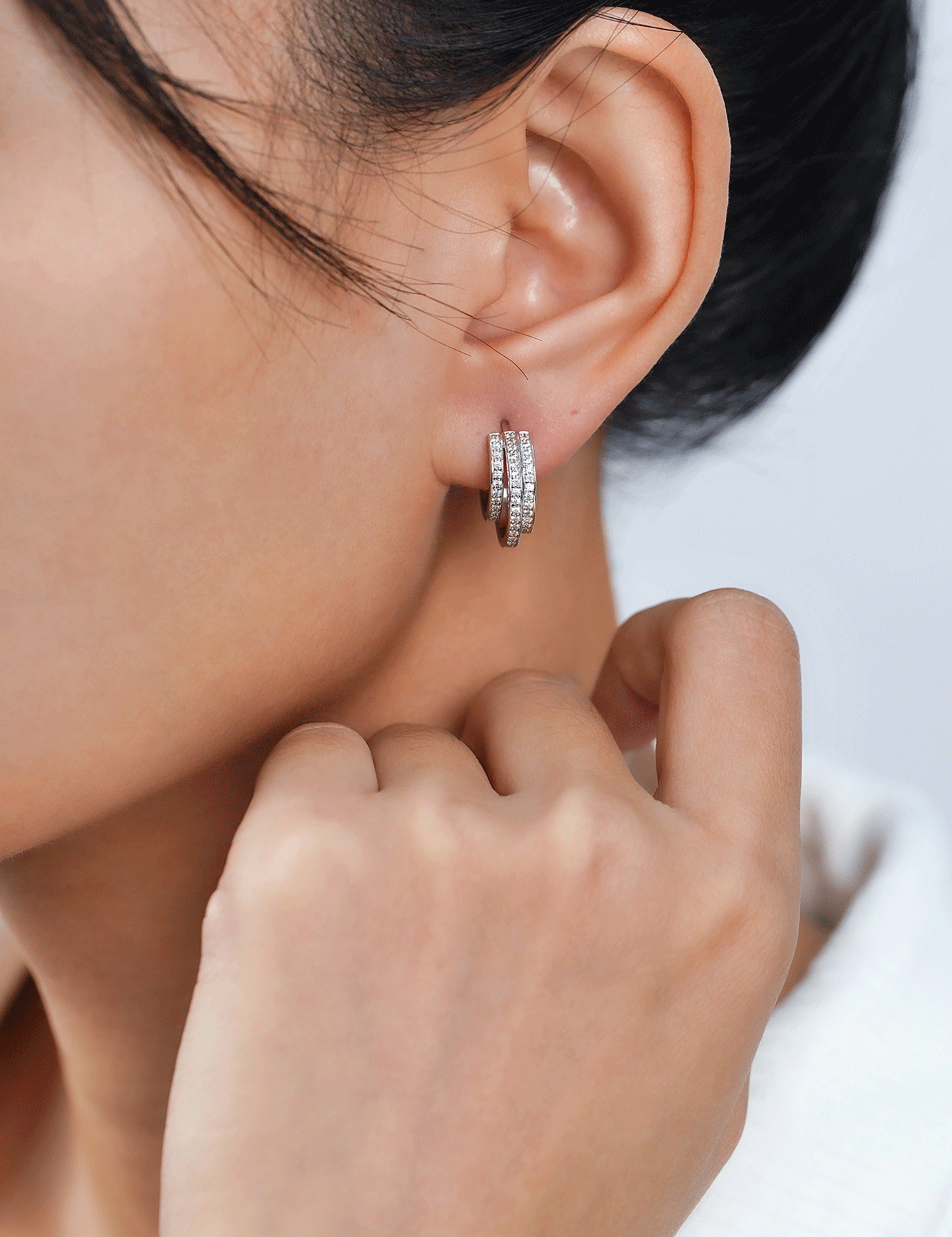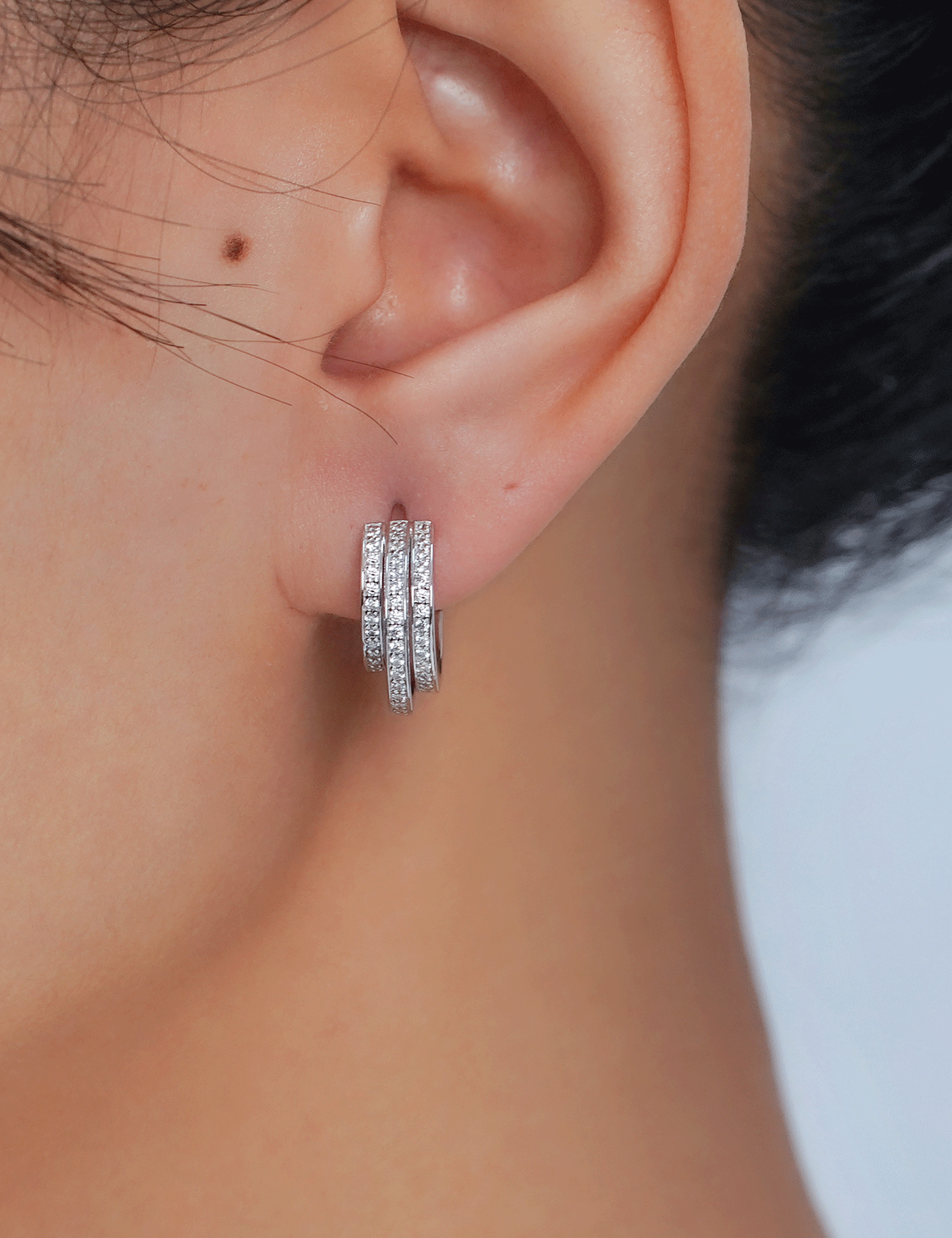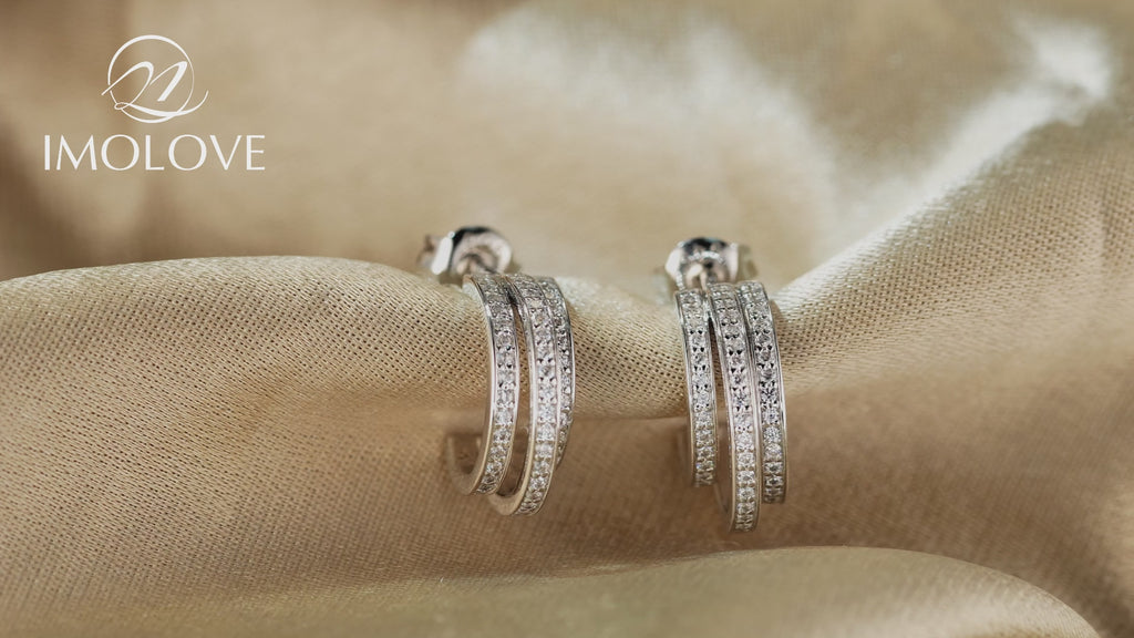 Moissanite Three Row Post Split Half Hoop Earrings for Women