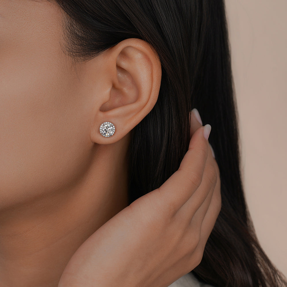 Lab-Grown Diamond Round Cut Halo Stud Earrings in 14K/18K Gold