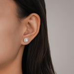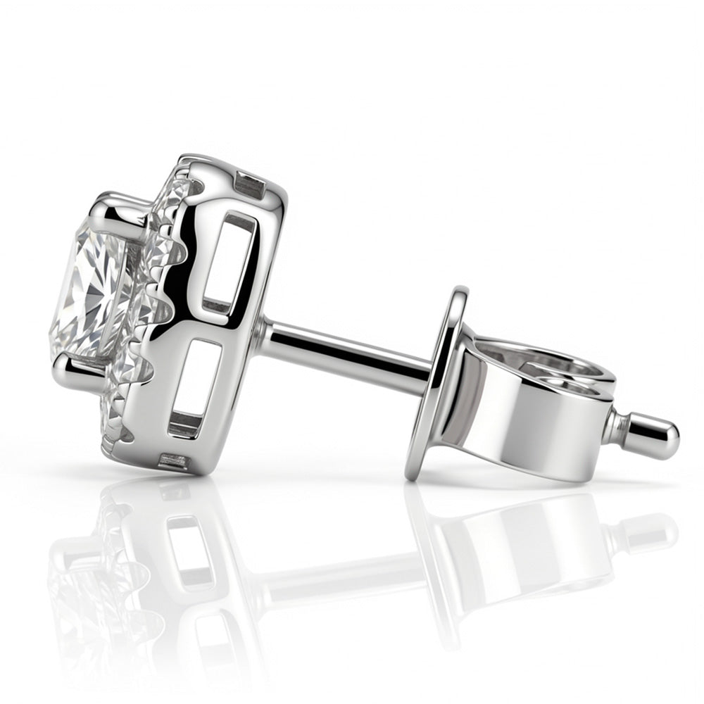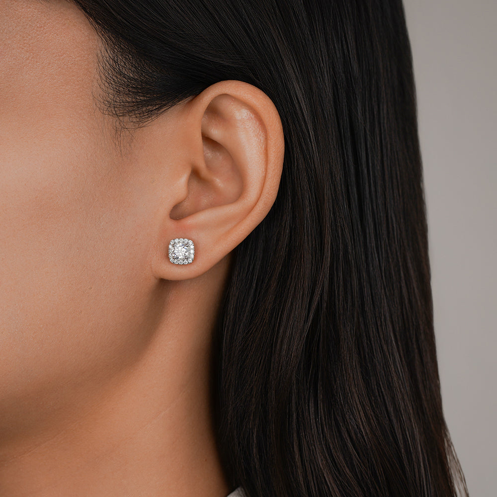 Lab-Grown Diamond with Exceptional Sparkle These stud earrings designed with a striking square-shaped center stone and a surrounding halo of round accents, these stud earrings offer classic structure with soft sparkle. A versatile essential that completes any outfit with understated elegance.