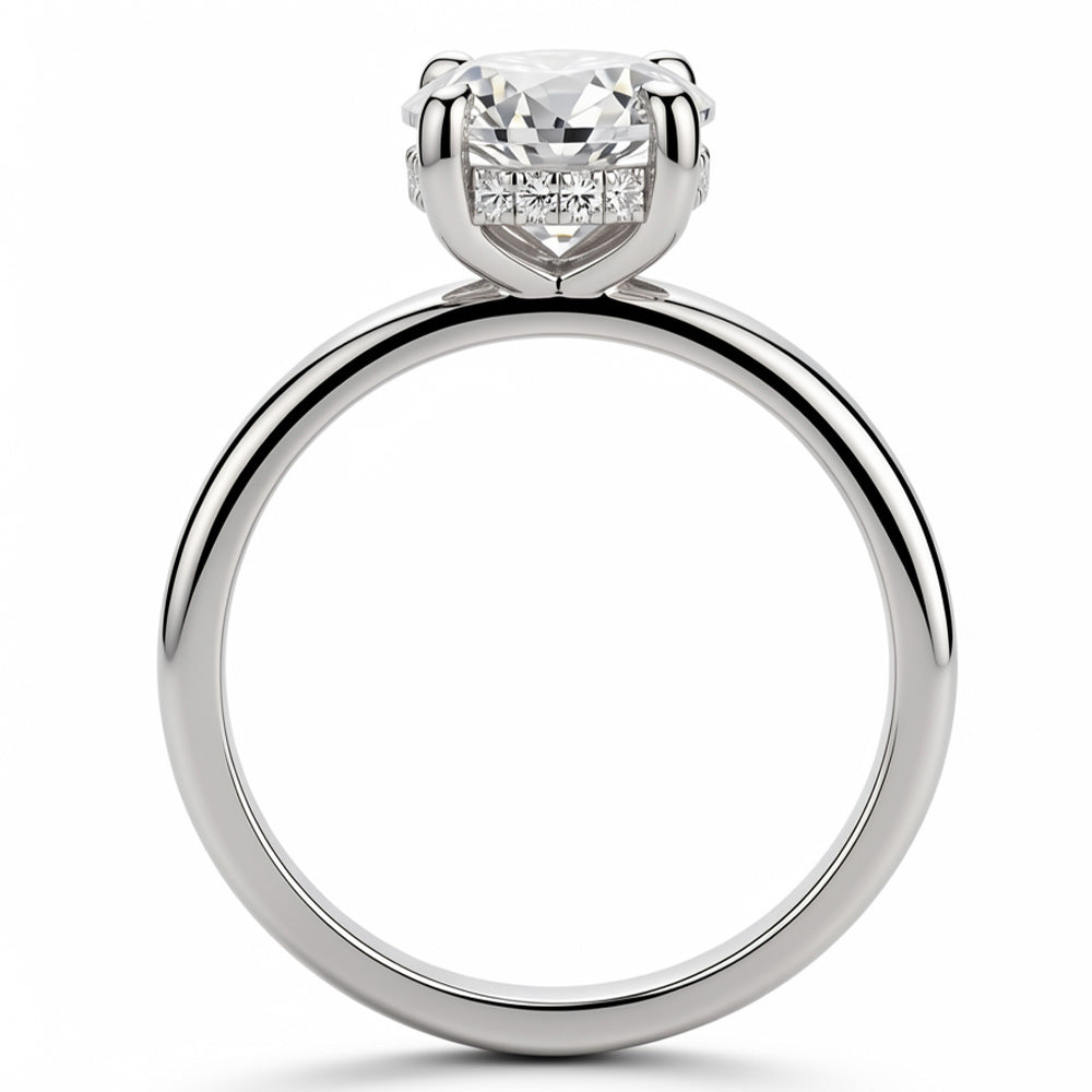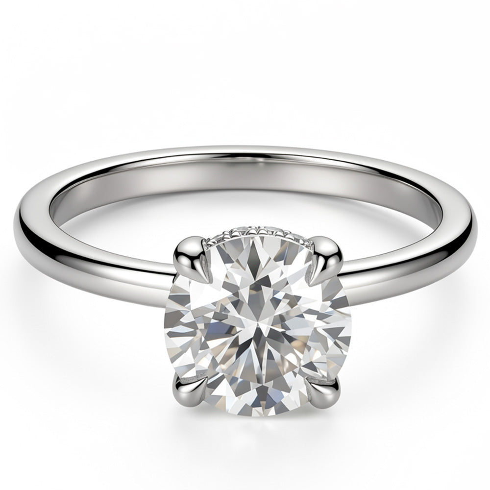 Solitaire Engagement Ring with Hidden Halo for Women, Four-Prong Setting