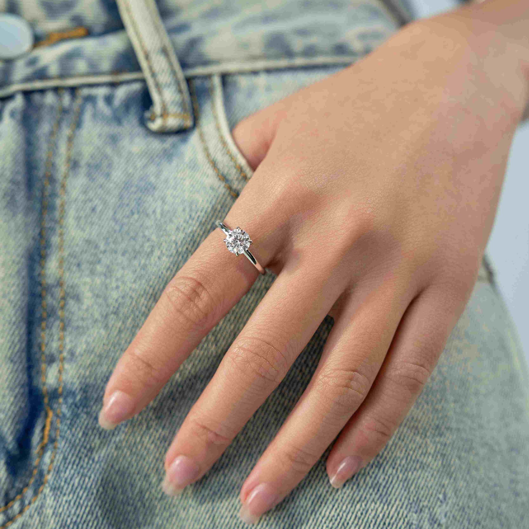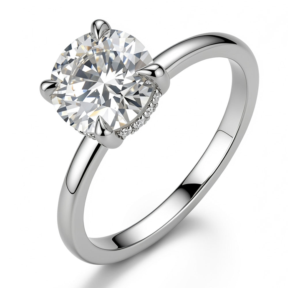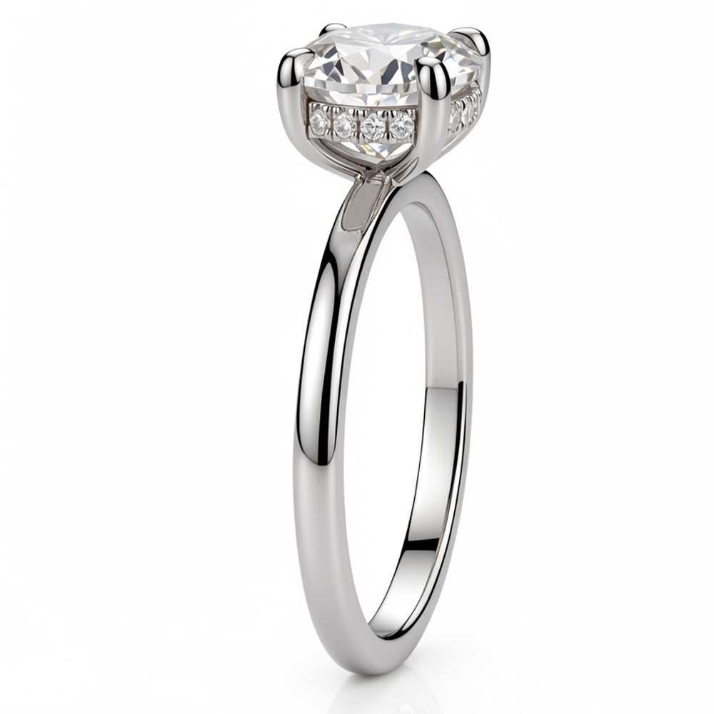 Lab-Grown Diamonds with More Sparkle This four-prong solitaire engagement ring showcases a brilliant lab-grown diamond, elevated by a hidden halo of delicate pavé-set stones beneath the center diamond, enhancing its fire and sparkle from every angle. Timeless and elegant, it offers lasting brilliance, durability, and exceptional value—a refined symbol of your forever.