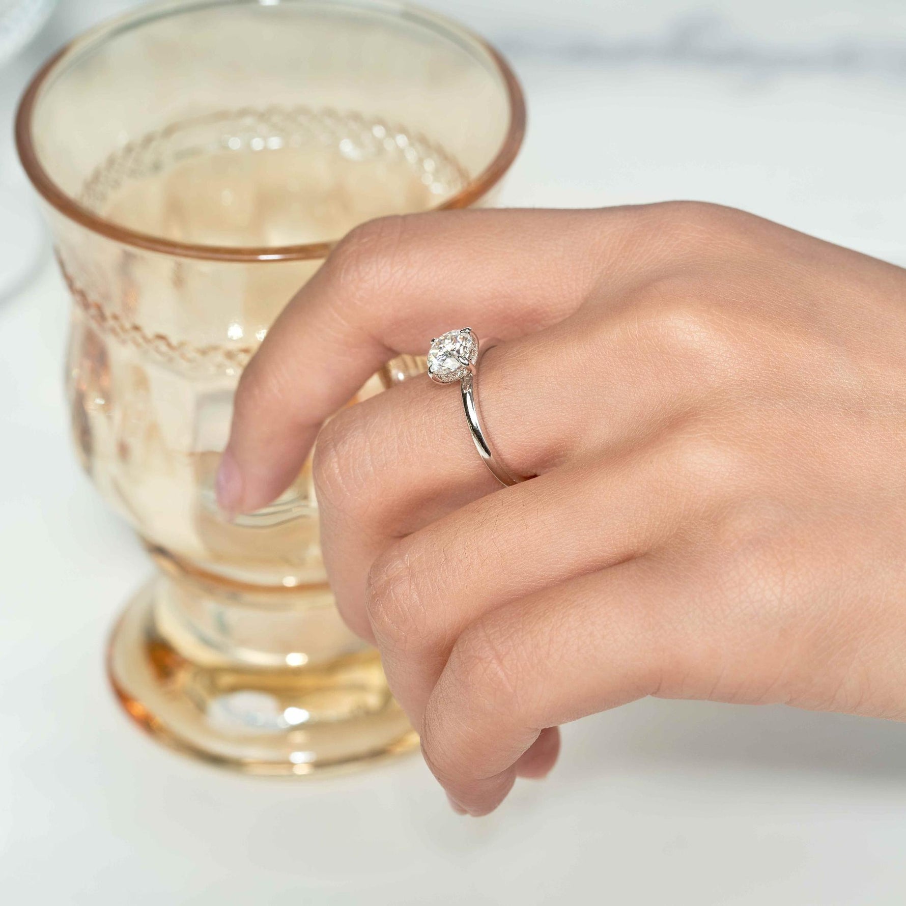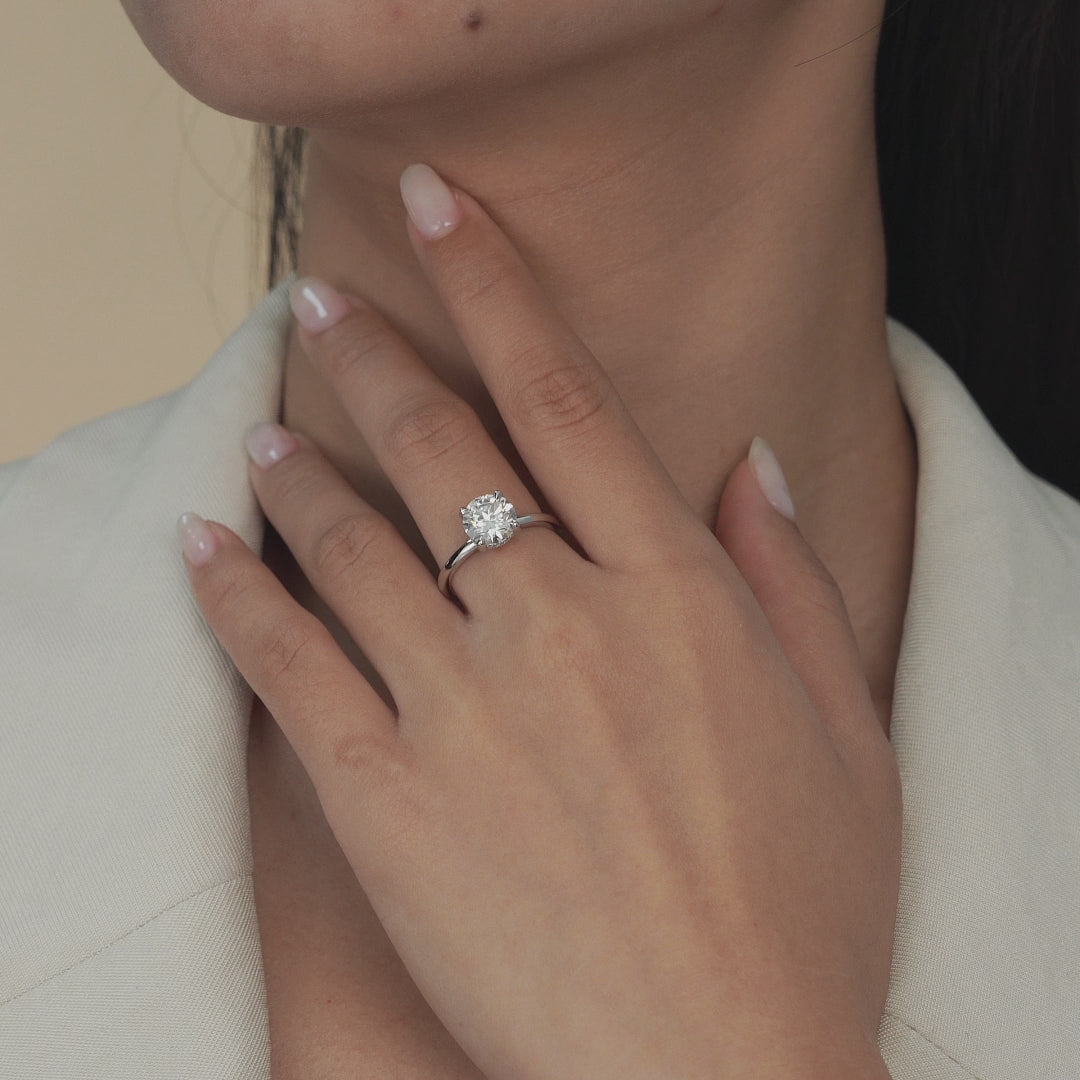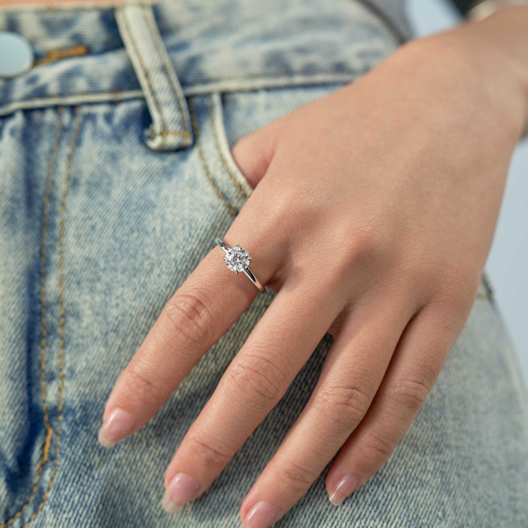 Lab-Grown Diamonds with More Sparkle This four-prong solitaire engagement ring showcases a brilliant lab-grown diamond, elevated by a hidden halo of delicate pavé-set stones beneath the center diamond, enhancing its fire and sparkle from every angle. Timeless and elegant, it offers lasting brilliance, durability, and exceptional value—a refined symbol of your forever.