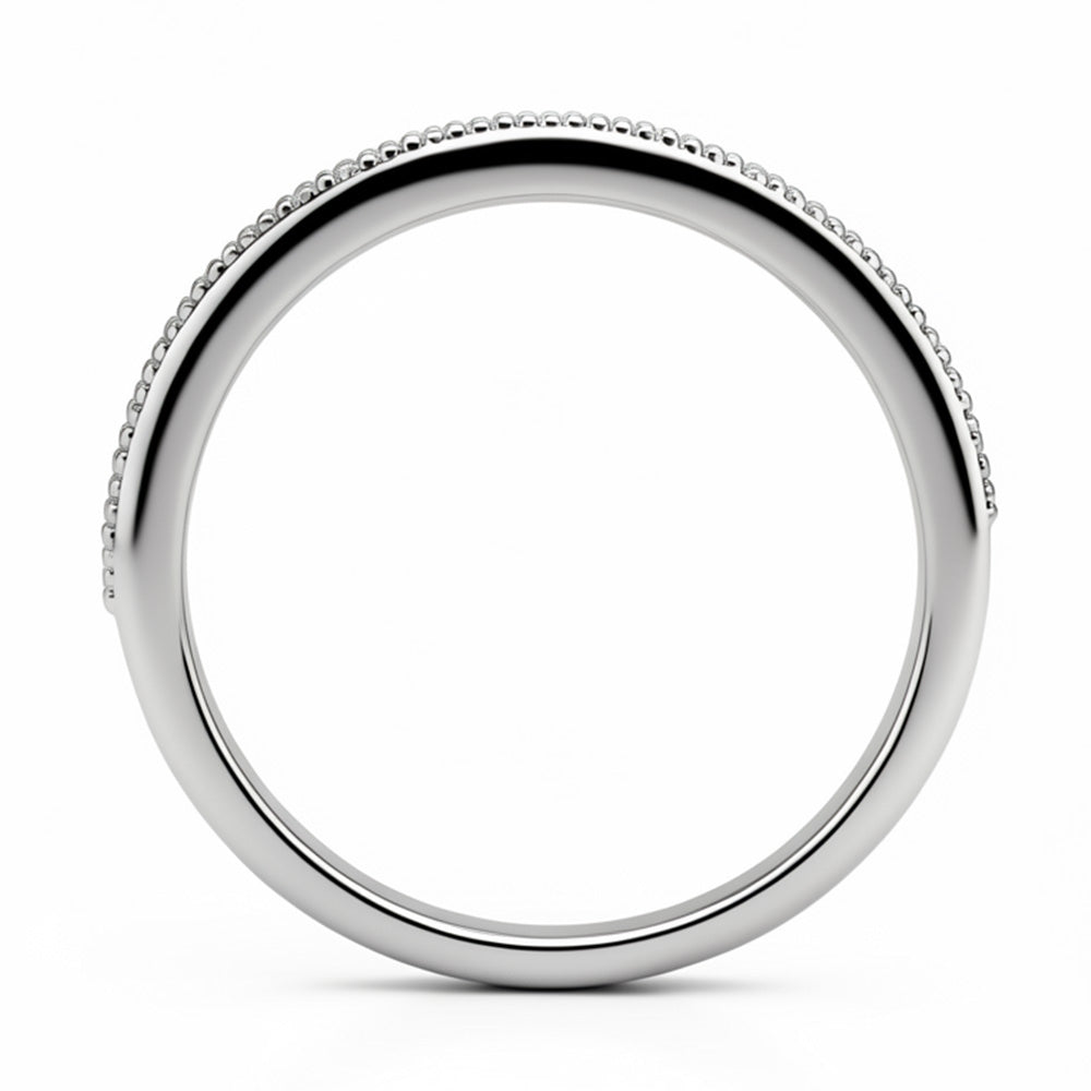 Timeless Elegance with Modern Sparkle Delicate milgrain edging frames a half‑eternity band set with sparkling lab‑grown diamonds. The vintage‑touch beaded detail adds subtle texture, while diamonds cover the top half for everyday wear without feeling heavy. A timeless, stackable ring that’s modern, elegant, and made to be worn every day.