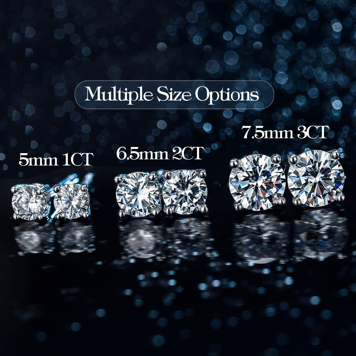 【100% Real Moissanite with More Sparkle】-The stud earrings for women is made of 100% REAL MOISSANITE in DEF color and VVS1 Clarity, which is as hard and shiny as natural diamond. It won't tarnish or discolor and it is more cost-effective than diamond. The stones are 5mm, 0.5 carat*2 =1 carat.