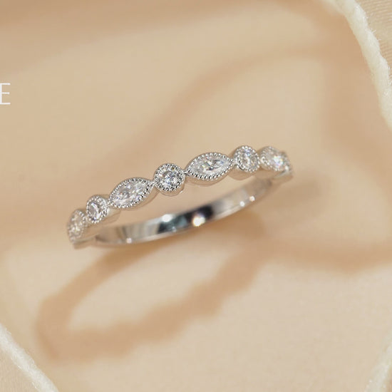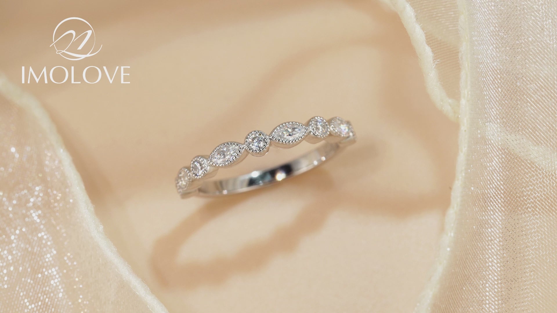 【100% Real Moissanite with More Sparkle】-The silver marquise wedding band is made of 100% REAL MOISSANITE, which is as hard and shinny as natural diamond. Moissanite won't tarnish or discolor and it is more cost-effective than diamond.